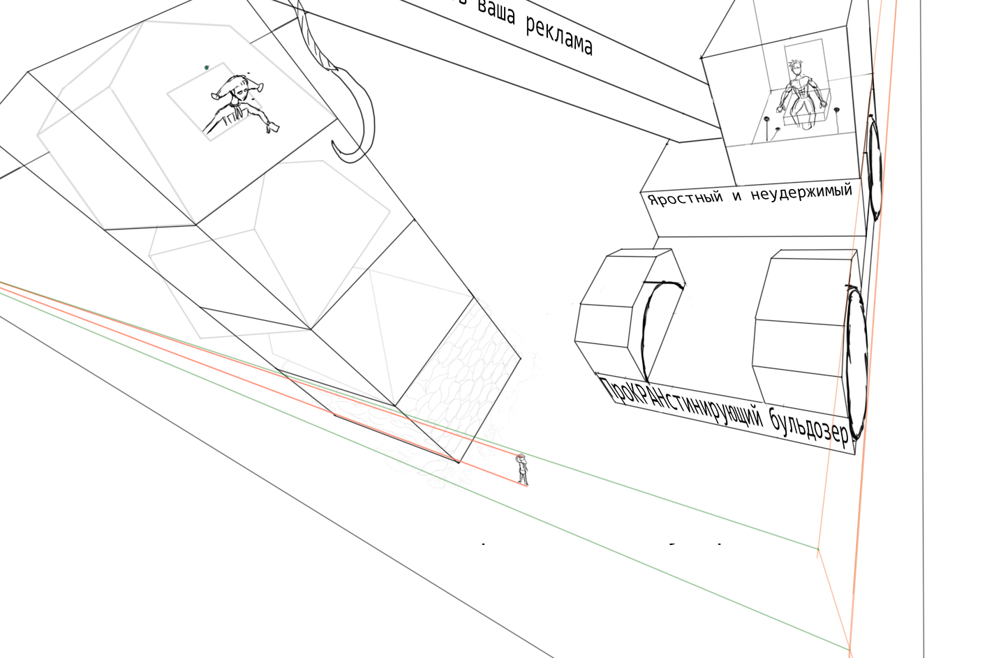 >>1234709 Третью точку схода не там взял. Надо было брать снизу, а не сверху. Из-за этого основание крана на земле от нас дальше, но по размерам стало больше верхней грани.