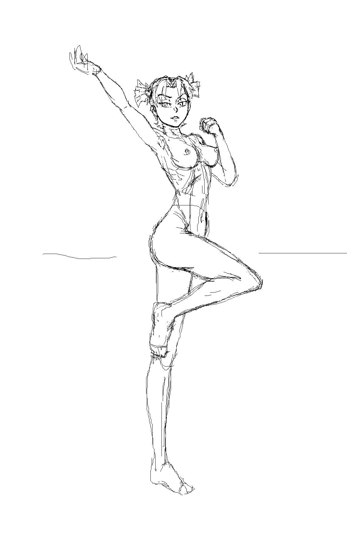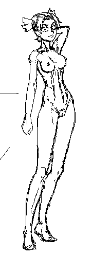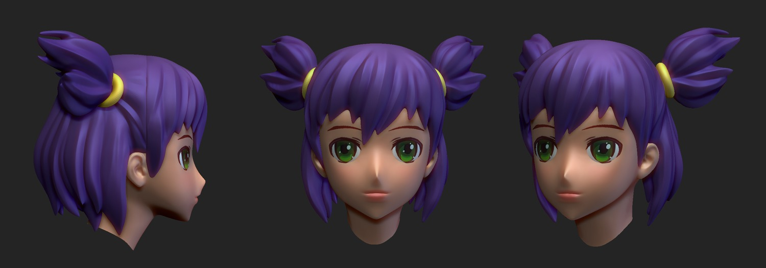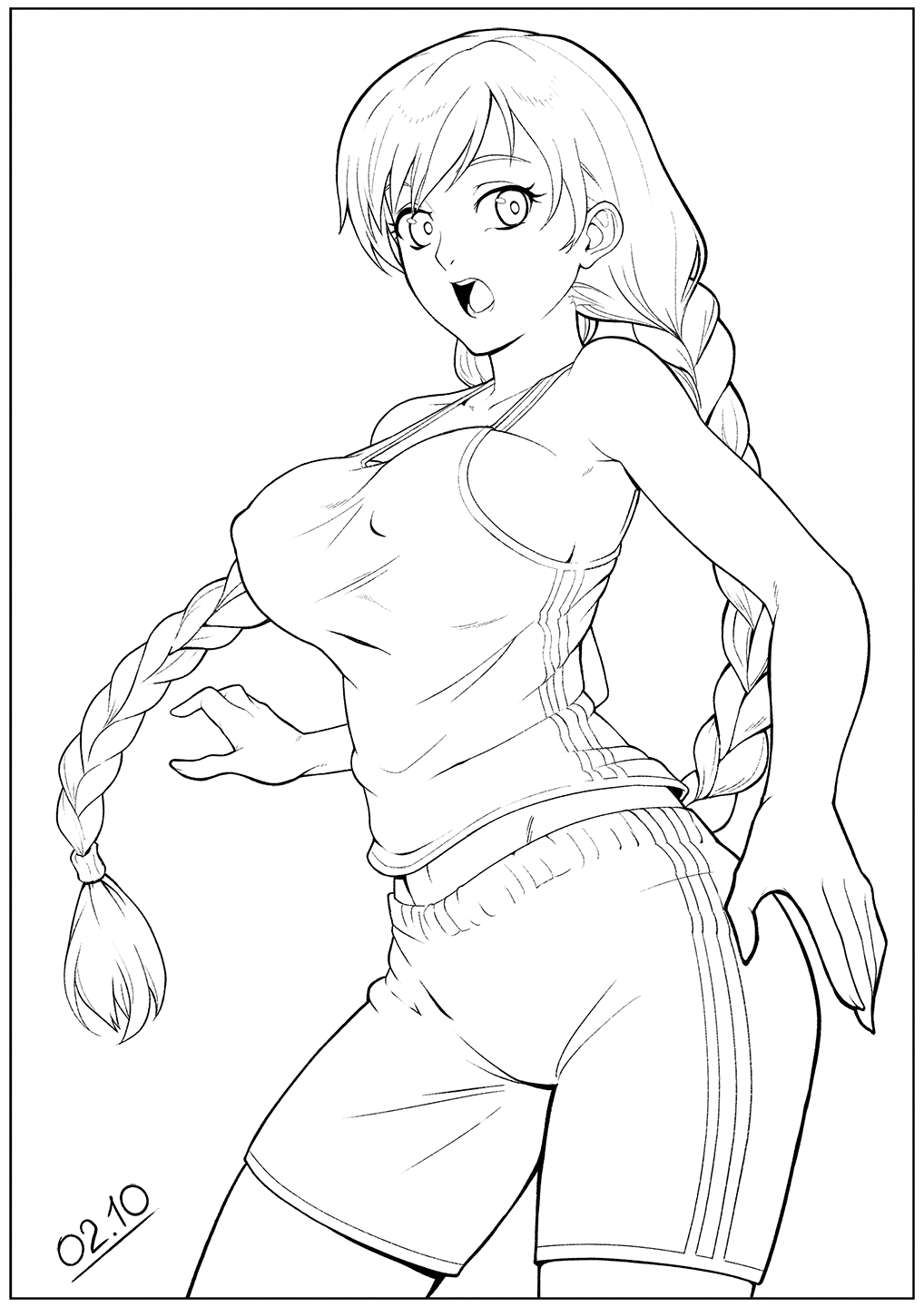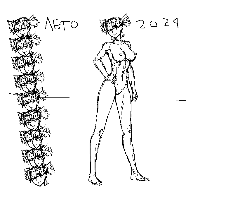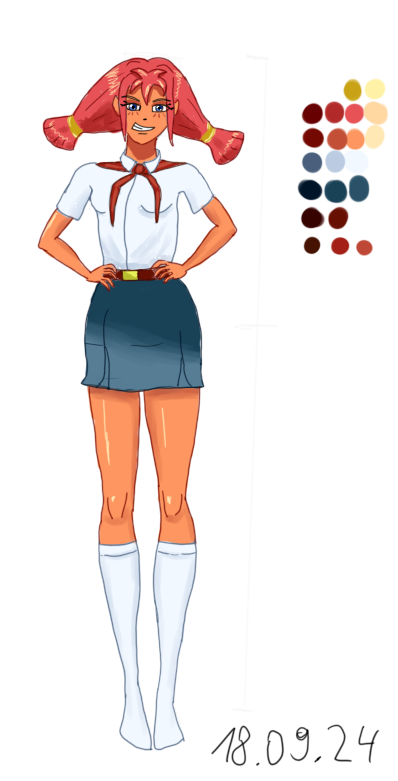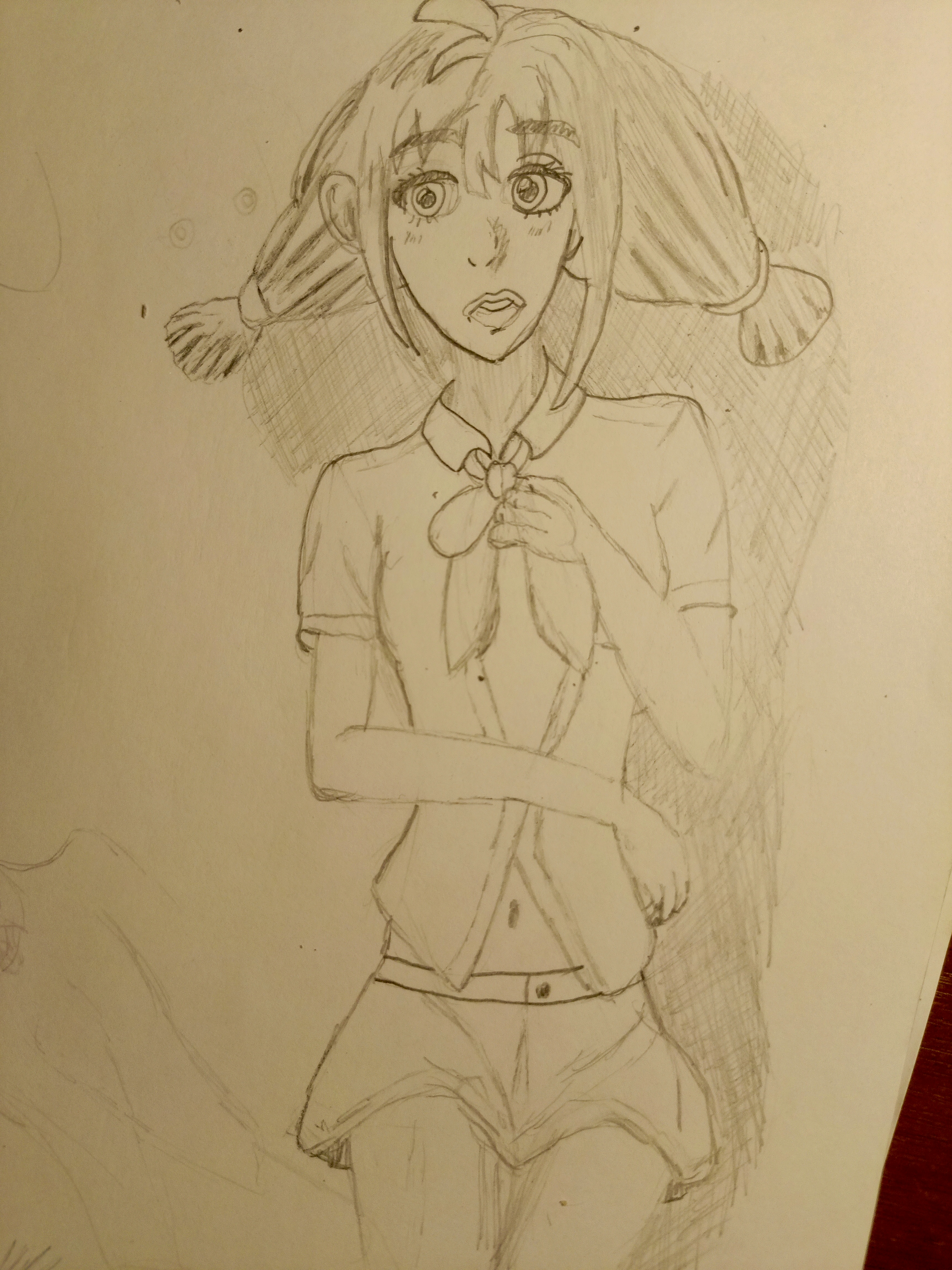 грудь я как-то не смог выделить, будто плоская, правая коса получилась чуть ли не в два раза больше левой и я заметил это только в конце. Ноги дорисовывать не стал, ну и руки. И шорты, я сначала хотел чтобы они лежали, как на референсе, а получалось будто они объёмные, крч тоже не получилось забил. В общем буду учиться