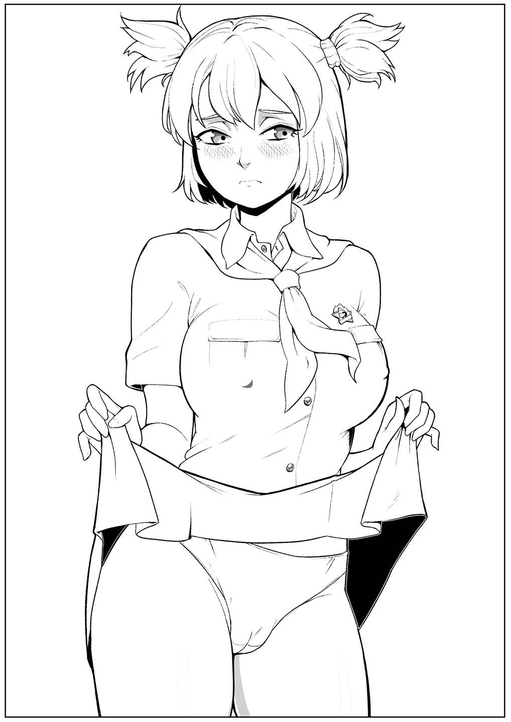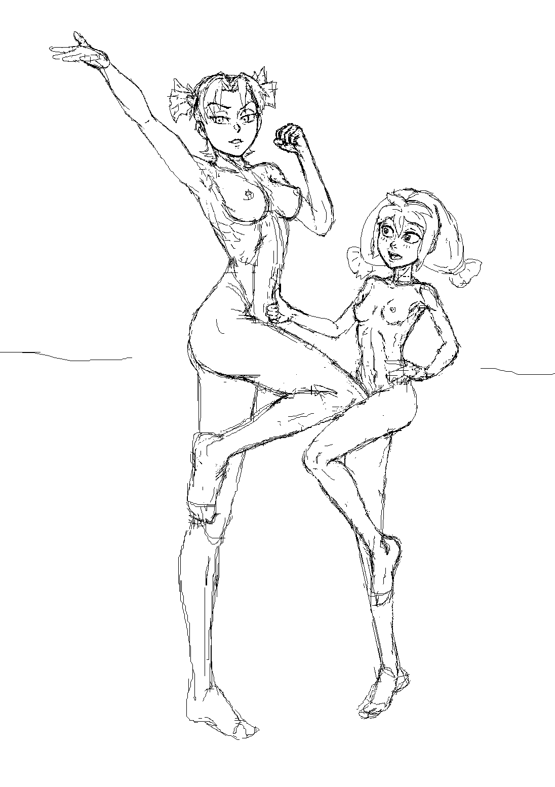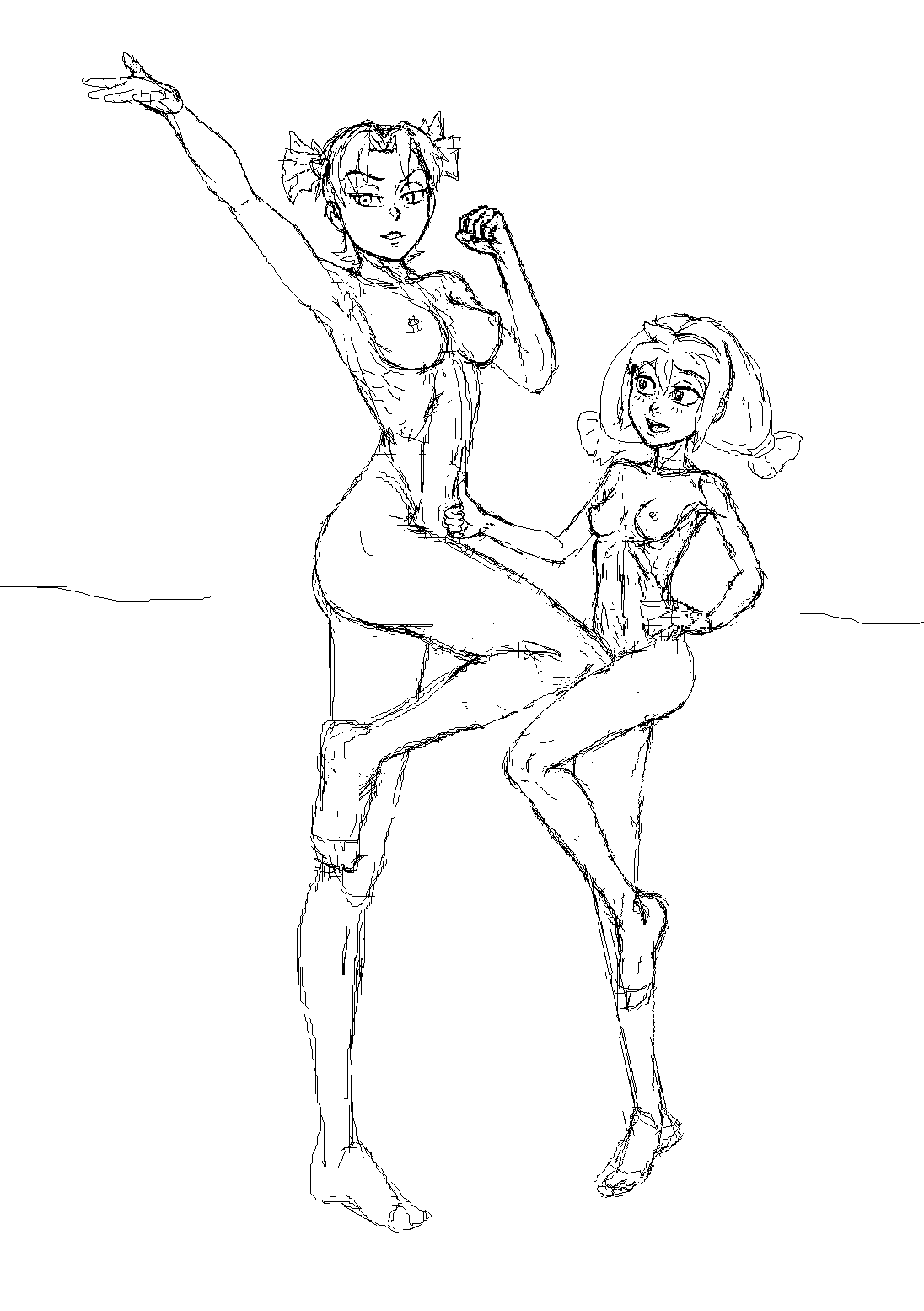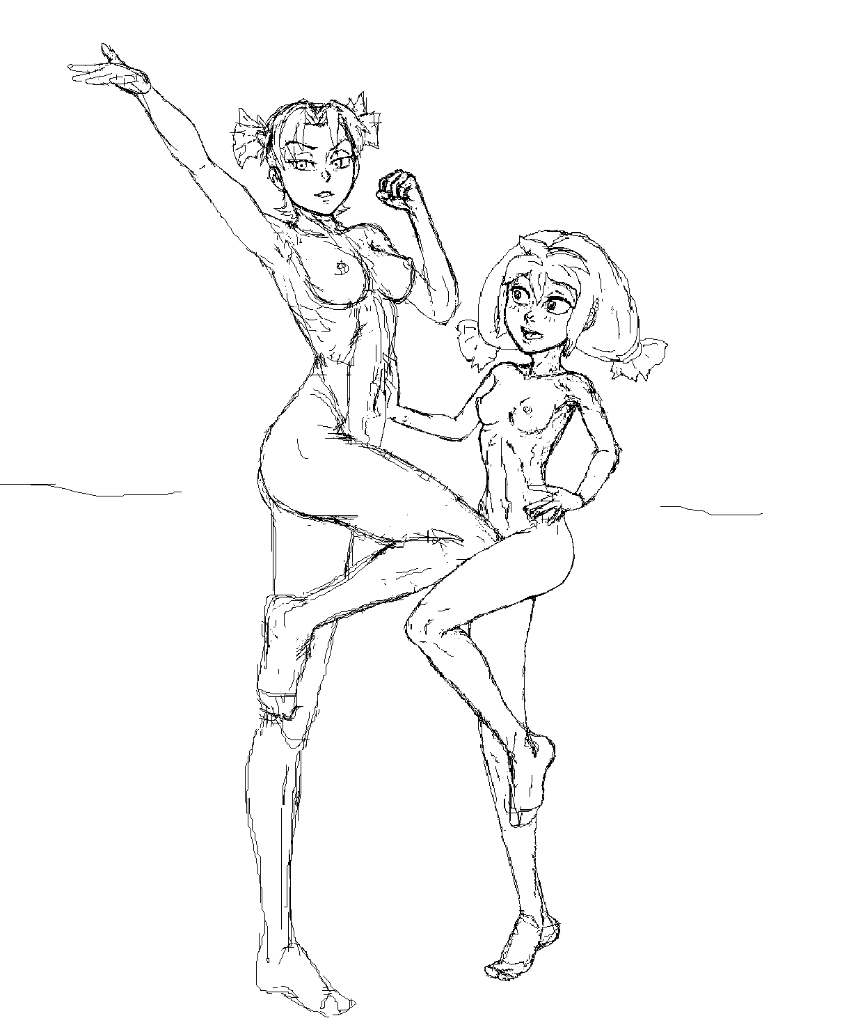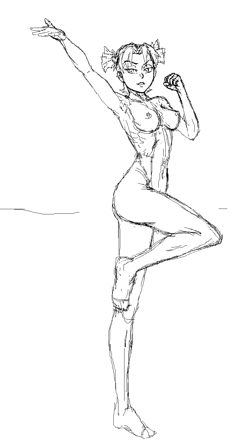 грудь я как-то не смог выделить, будто плоская, правая коса получилась чуть ли не в два раза больше левой и я заметил это только в конце. Ноги дорисовывать не стал, ну и руки. И шорты, я сначала хотел чтобы они лежали, как на референсе, а получалось будто они объёмные, крч тоже не получилось забил. В общем буду учиться