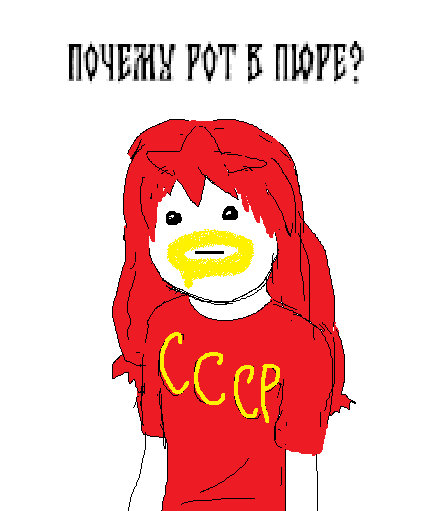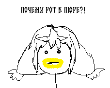 Суперреквест: Ульяна в профиль с желтым шлейфом вокруг рта и надпись "а почему рот в пюре". Как альтернативный вариант - Юля с белым шлейфом и надпись "а почему рот в сахаре"