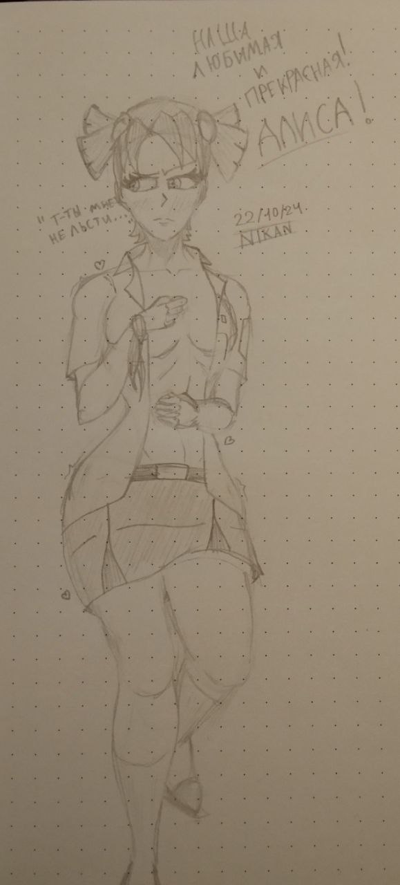 Алиса в купальнике! (маленький контекст, нашёл я рисунок сделанный ИИ про алису, решил нарисовать. ИИ херня, а рисунок с душой, +учусь и хочу замастерить рисование БЛ девочек. +хочу Алисофагам добро сделать.)