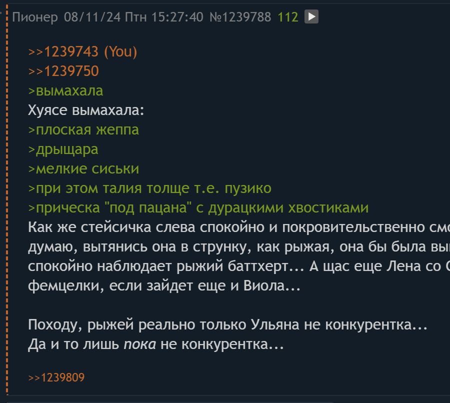 Вот буду честен, может быть и я являюсь любителем пионерок, Славя и Алиса мои любимые, но вот, у меня всаёт на Ольгу сильнее всего, серьёзно. Самые лучшие эрекции именно от неё, вот Ольга даже заставляет будто меня не дрочить, чтобы под конец недели я кончил очень много думая о ней. Даже девушка которая мне нравится похожа на неё, так что... Удачи парни, может быть моя колега по работе есть реальной Ольгой.
