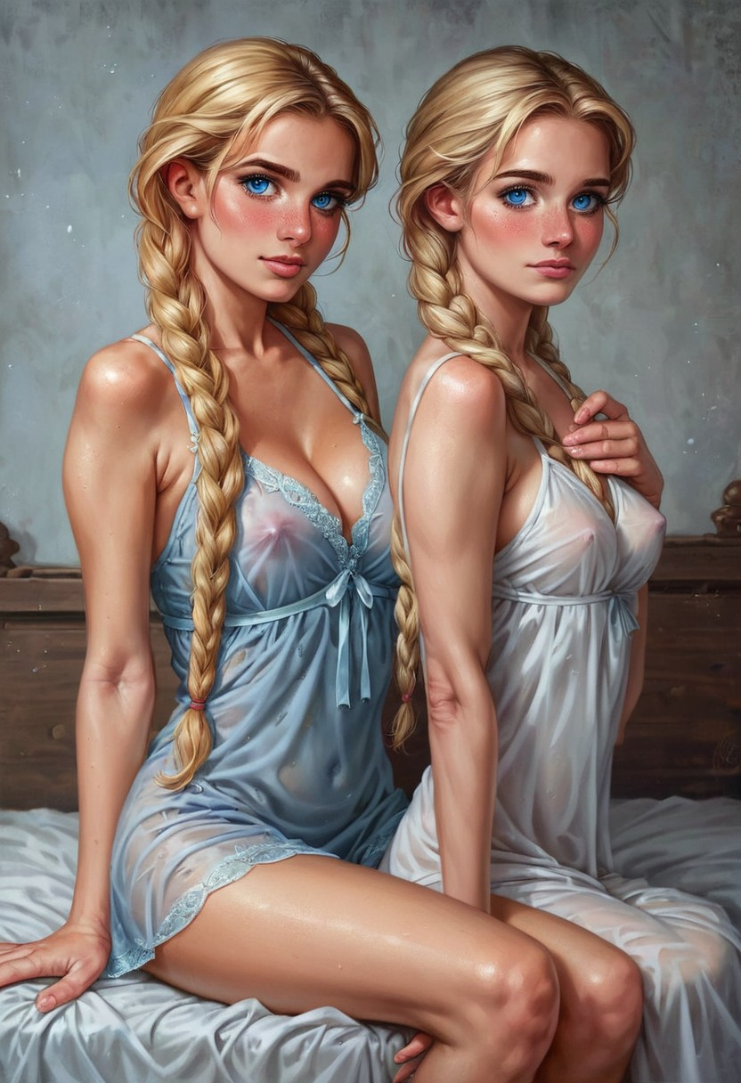 Господа нейрохудожники, вы зачем генерируете Леночьку и Славю с тегом medium_breasts? Не стыдно вам коверкать светлый образ Девочек, запечатлённый в моей памяти? Ясно же, что им обеим нужно large_breats (не путать с huge_breasts). Будьте людьми, мне с трудом удаётся телебонить на medium_breasts.