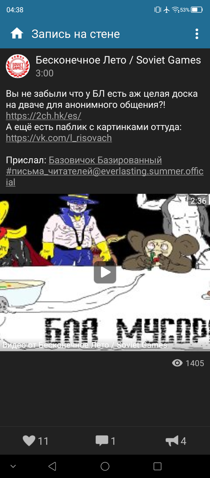 В общем типичное сигма\ literally me видео. Ещё можно как нибудь замутить эффект художественного параллакса на каждом кадре, когда основная картинка движется вправо, а фон влево, как на втором видео. Я понимаю, это какой то высер получился, но я уже у себя в голове вижу это видео, а вот за один вечер его не реализовать. Ещё я хотел сделать как на третьем видео, чтобы к каждой пионерке так подходил, и у каждой своё взаимодействие, но идея выше мне больше нравится из за драматичности.