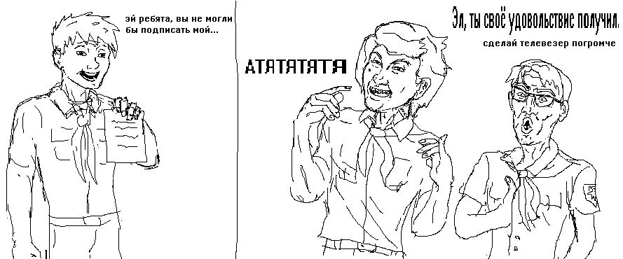 >>1245347 да защищает он ее, блять! Трубой водопроводной! Че под рукой было, тем и защищает! да и типа пионерка не определена, потому на голове и прическа с одной стороны такая, с другой такая, и на лице знак вопроса!!