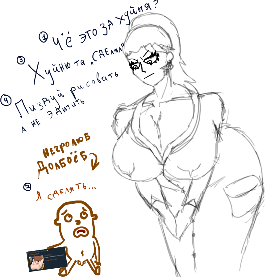 Чё тут за идиотизм бля происходит, я чисто арты скинул >>1245238 Спасиб, рад такие арты делать и буду их делать больше >>1245239 А чё? Рисую что хочу, есть желание рисовать белых, и хочу лишь белых, хуле мне негры нужны? >>1245240 Хуёво выглядит, не продолжай в том же духе >>1245262 Моя первая работа хуле, я ни разу ни жоп, ни пизд, ни хуёв не рисовал прежде Так что надо учиться рисовать более реалистичные титьки