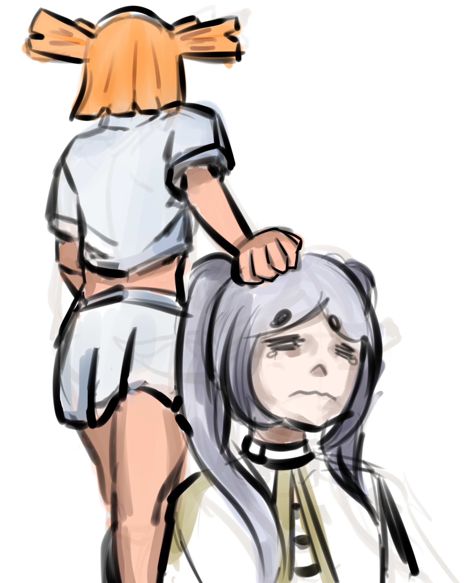 >>1245885 Очень даже неплохо, но вот уши будут в другом месте, голову надо к шее прикреплять чуть-чуть правее и увеличить объём волос на макушке. Тогда будет так:
