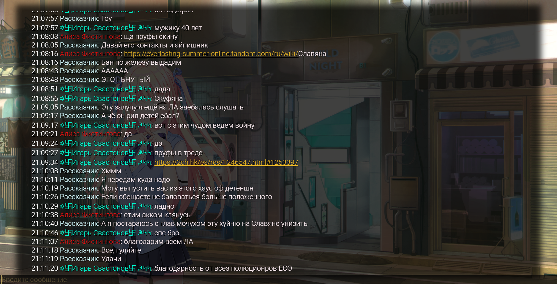 Пауза. Все замерли. вожатый прочитал несколько строк… И тихо вышел из чата.