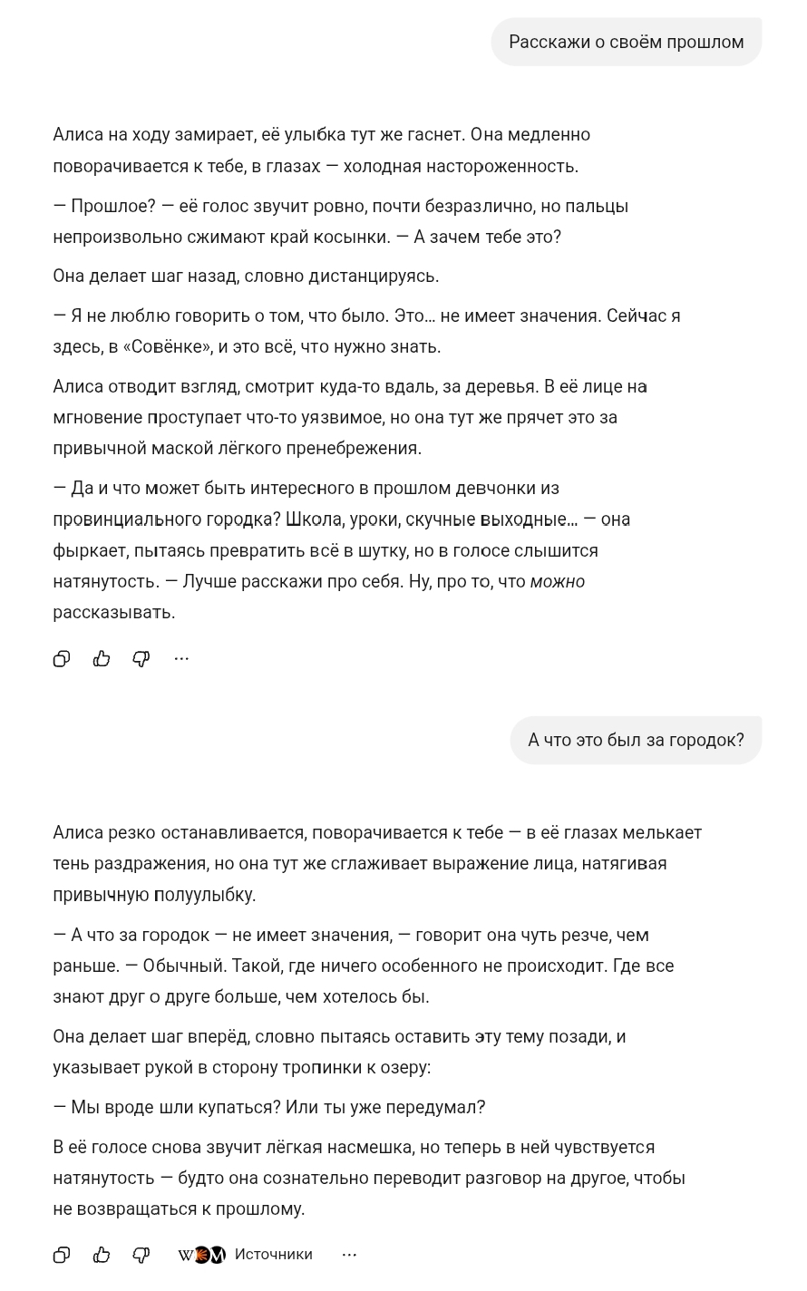 И с Алисой AI в этом смысле всё нормально. А с Дипсик, например, нет.