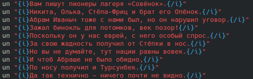 >>1255090 Раздутый он не бессмысленно, а вполне на твердую 4. Кому-то в кайф много читать, кому-то нет. Я из первых в случае если это : А) может с какой-то новой стороны показать персонажа, Б) подметить какие-то детали ворлдбилдинга, В) хоть как-то двигает сюжет. Например примерение Слави и Алисы/параллельное повествование/отрядные свечки. Вполне сюда вписываются. А тарахтелки с Ульяной о жуках или пользе бега от Слави, ну хз. Уже да, тягомотина. Каждому своё.