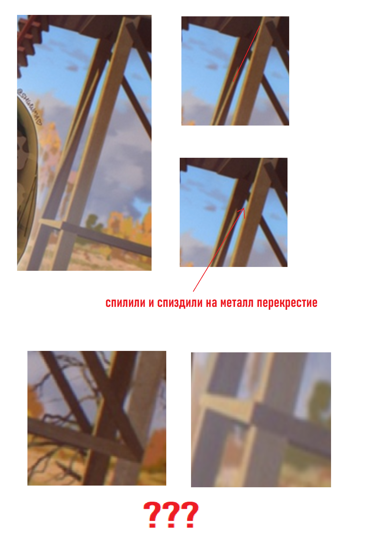 Не говоря уже о том, что она начинается из ниоткуда и ничем не заканчивается, хотя на других балках видно приваренные к колоннам листы внахлёст(пик 3)(к реалистичности такой конструкции вообще отдельный вопрос....)