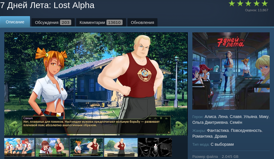 Тред самого крупного мода для Бесконечного Лета. С 2019-го есть две версии: в мастерской Стима от энтузиастов (Lost Alpha) и авторская от 7дл-куна. Новичку начинать со стимовской Лост Альфы, именно её обсуждают в треде.
