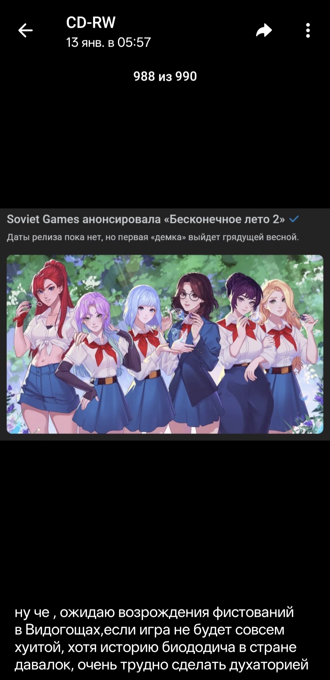 12 числа сего месяца, запойный алкоголик, известный как Риточка, заанонсил в стиме свой гнойный нейровысер - так называемое "Бесконечное Лето 2".