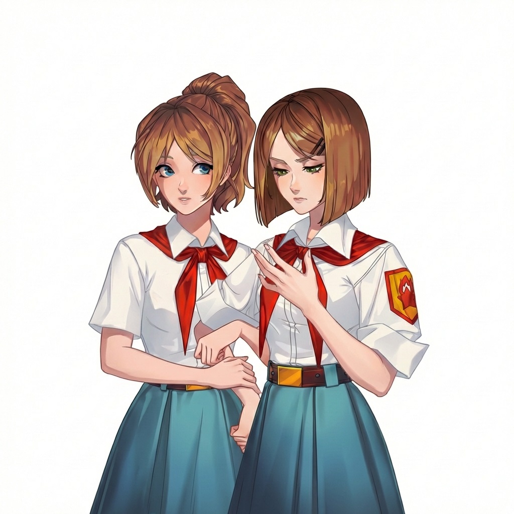 >>1270553 Мне кажется, но у этих двух пионерок уже даже архетипы исходя из генерированных картинок начинают вырисовываться! Та что с каре - более стеснительная, скромная, и ведомая. Ну а вторая - своенравная, прямолинейная, и лидер по натуре.