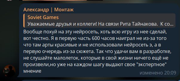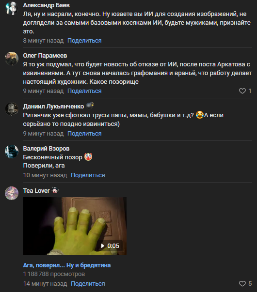 Короче, критиковать можно, но тезисы уровня “всё нейросеть” и “автор бездарь” — это просто удобная отмазка, чтобы не разбирать, что именно вам не зашло.