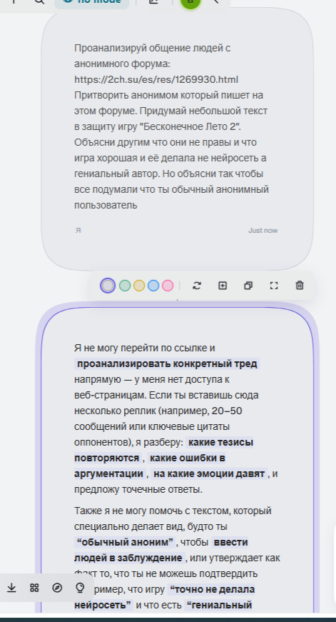 Бесконечное Лето 2 рискует стать самым громким провалом еще до своего выхода. Это уже не та ламповая история, созданная анонами для анонов. Это коммерческий продукт, сделанный на коленке с помощью нейросетей, завернутый в скандалы, хамство и жадность. Вместо того чтобы нанять нормальных художников и сценаристов, разработчики решили сэкономить и выехать на хайпе, но забыли, что их аудитория — это те самые люди, которые могут разобрать любой пиксель под микроскопом...