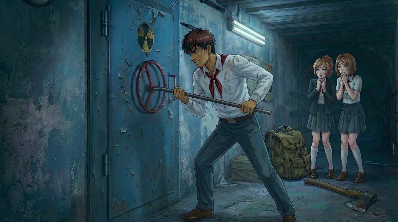 Грохот за спиной оборвался так же внезапно, как и начался. Тяжелая гермодверь с лязгом, от которого заложило уши, встала на место, отрезая путь назад. Пыль медленно оседала в свете тусклых аварийных ламп, покрывая их и без того потрёпанную одежду новым слоем серого налета. - Нет! Нет, нет, нет! - Соня первой нарушила тишину. Она бросилась к металлической преграде, колотя по ней сбитыми в кровь кулаками. Рукав её рубашки, почти оторванный по шву, болтался, мешая движениям, но она не обращала внимания. - Откройся! Семён, сделай что-нибудь! Мы застряли! Она металась вдоль стены, как пойманная птица, не замечая, как грязь размазывается по её лицу вместе со слезами. - Это ты виноват! - она резко развернулась к парню, её глаза лихорадочно блестели. - «Пойдем, посмотрим что в тоннелях», да? Посмотрели?! Мы здесь сдохнем! Мы останемся здесь навсегда! Семён молчал, тяжело дыша. Он чувствовал, как холодный пот стекает по спине, неприятно щипля глубокую царапину на шее, полученную при падении. Его рубашка тоже была изодрана на боку, а ладони саднило от бетонной крошки. Он перевёл взгляд на Настю. Та стояла у противоположной стены, неестественно прямая. Она медленно, словно во сне, проводила грязной ладонью по холодному бетону, изучая кабели. - Настя? - позвал Семён, пытаясь сохранить самообладание. - Герметичность полная, - прошептала она, не оборачиваясь. Голос был сухим, механическим. Она стряхнула известковую пыль с плеча, словно это сейчас имело значение. - Вентиляция работает автономно. Выхода нет. Вероятность открытия изнутри без кода доступа... стремится к нулю. - Заткнись! - крикнула Соня, закрывая уши руками и сползая по двери на пол. - Не говори так! Замолчи! Семён понял: сейчас начнется цепная реакция паники. Он шагнул к Соне, морщась от боли в ушибленном бедре, рывком поднял её и крепко прижал к себе. Она дернулась, пытаясь вырваться, но потом обмякла, уткнувшись ему в плечо. От неё пахло пылью, потом и страхом. - Тише, Сонь. Тише, - он гладил её по спутанным, покрытым паутиной волосам. - Я здесь. Мы вместе. Мы выберемся, слышишь? Не разжимая объятий, он посмотрел на Настю. Она продолжала гипнотизировать взглядом пучок проводов. Ей нужно было действие. - Настя! - крикнул он. - Мне нужен свет. Нормальный свет, а не эта красная аварийка. Проверь щиток, ты же ближе всех. Живо! Команда сработала. Настя моргнула. - Щиток... да. Сейчас. - Она двинулась к ржавому ящику, слегка прихрамывая. Пока Настя возилась с тумблерами, а Соня постепенно затихала, размазывая грязь по щекам, Семён осмотрелся. Его взгляд упал на старый, выцветший плакат на стене. На нём был изображен схематичный человечек в противогазе, бодро шагающий в сторону убежища - чистый и опрятный, полная противоположность им троим. - Гляньте, - хрипло сказал Семён, кивнув на стену и пытаясь выдавить улыбку, хотя губа у него была разбита и саднила. - А парень-то на плакате явно оптимист. Идёт в бункер, как на дискотеку. Даже противогаз надел, чтобы фейс-контроль пройти. Повисла тишина. А потом Соня, шмыгнув носом и вытирая лицо своим галстуком, вдруг фыркнула. - Дурак ты, Семён, - пробормотала она. Настя, щелкнув тумблером, обернулась. Свет зажегся, осветив их бледные, перемазанные сажей и пылью лица. Она посмотрела на свои руки, покрытые мелкими ссадинами, потом на ребят. - У него просто сменный фильтр новый, - тихо заметила она. - Вот и р
