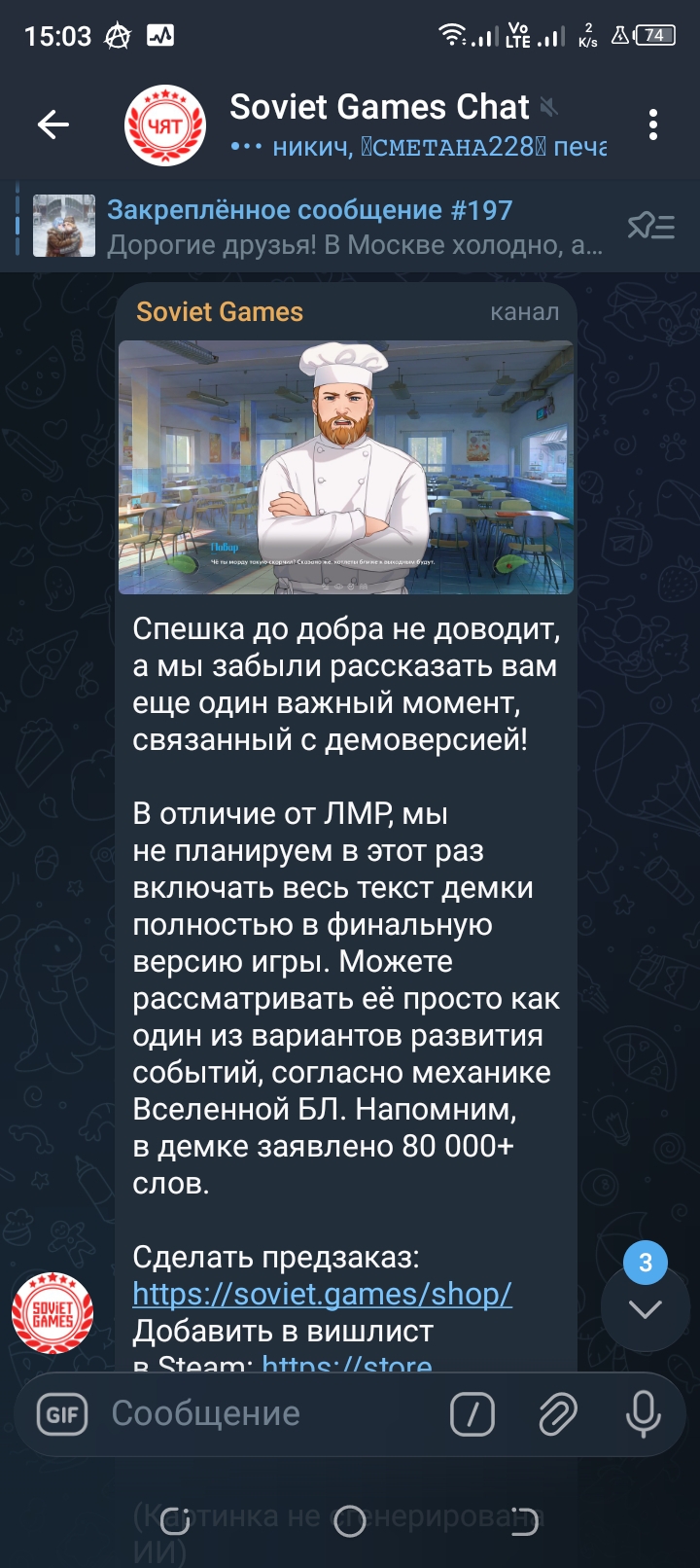 >В отличие от ЛМР, мы не планируем в этот раз включать весь текст демки полностью в финальную версию игры. Можете рассматривать её просто как один из вариантов развития событий, согласно механике Вселенной БЛ Ждем полностью переписаный сюжет?