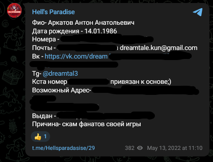 АХАХАХХА!!!! Я СЕЙЧАС ОТ СМЕХА СДОХНУ! И да, когда я решил загуглить его TG мне попалась интереснейшая инфа, чтобы не попасть под бан инфу замазал. Мод, не бань, инфа была в открытом доступе (Найдена в яндексе/гугле, а как нашли её уже те люди - мне не известно)