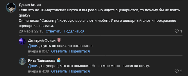 Хуя, видимо кто то сподобился наверное прочитать кроме ритана - и поняли какое это говно? Даже не знаю, что им теперь посоветовать. Но мне сразу бросилось в глаза при прочтении альфа демы - ритан разучился писать даже в том говностиле что у него всегда был. Просто сравните эту дему с текстом БЛ или ЛМР в прологе. Экспозиции ноль, живости персонажей ноль, проработка гг ноль. У него даже реакция на попадание в другую реальность отсутствует. Одни тупые диалоги ни о чем. Им придётся реально другого сценариста нанимать - потому что этот походу все скиллы уже пропил.