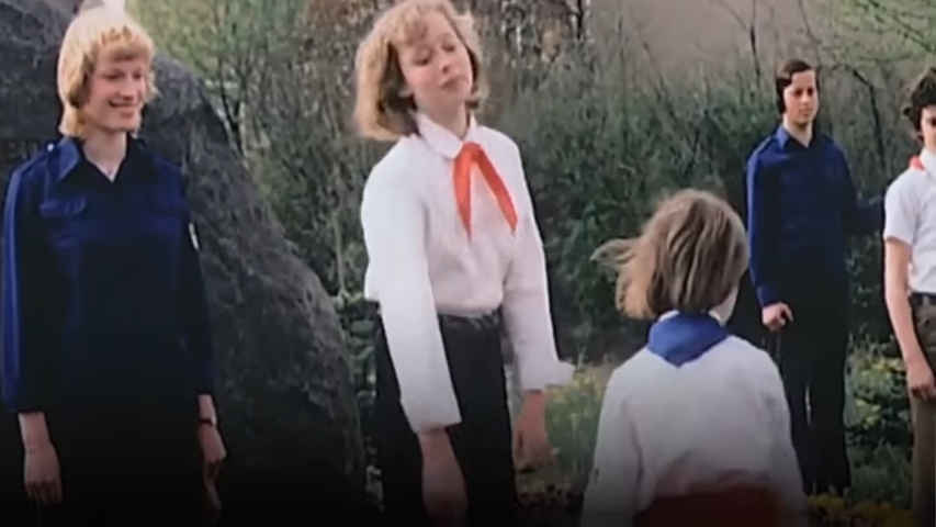 >>1152255 Одно время пионеры из ГДР носили синие галстуки, правда не помню, в какие годы. Может Саманта попала как раз в то время, определили в международный отряд.