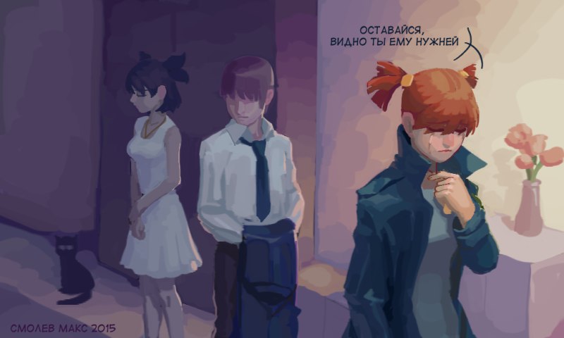 Хочу просто сказать, что в отличии от многих других, мне грустно не после плохой концовки Лены. Вовсе нет. Забавно, но я стал грустить после концовки Слави. Это буквально тип девушек, которые мне нравятся, но, к сожалению, я чмо унылое и не могу к девушке даже подойти нормально. Уже пол года вижу одну и ту же девушку из параллельной группы шараги в трамвае, еду прямо сзади неё и каждый раз молчу. Просто молчу, боясь подойти. В какой-то момент моя тупая голова выдала идею поздороваться, с тех пор каждый раз как я её вижу, мы здороваемся, но я глупо улыбаюсь и никакого продолжения даже разговора не происходит. Я знаю её имя и что ей нравится, а она меня не знает абсолютно. Чувствую себя каким-то сталкером, ходящим за девушкой по пятам. Завтра, вероятно, надо будет с ней заговорить, но смогу ли я себя пересилить... Слишком много было отрицательного опыта в прошлом.