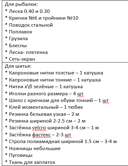 Шило и ножницы я бы не брал. Ну кроме тех, что есть в мультитуле. На отъебись ты и без них справишься, а на ЗБС смысла делать на коленике нет ни сырья, ни кадров смысла, ни скилла.