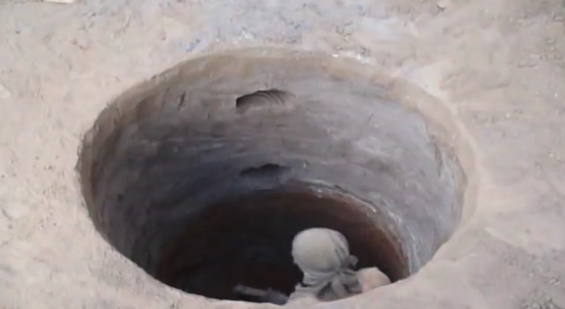 >Глубины 2,01-2,50 - И ниже - сверху строится навес с балкой над ямой, через балку перекидывается веревка с ведром. Анон по лестнице спускается в яму, наполняет ведро, поднимается наверх, тянет веревку, хватает ведро и ссыпает грунт. И так весь день. Это если анон один. Если анонов два, то могут по очереди: один час внизу колупает землю и наполняет ведро, второй поднимает землю и ссыпает ее. Через час меняются.