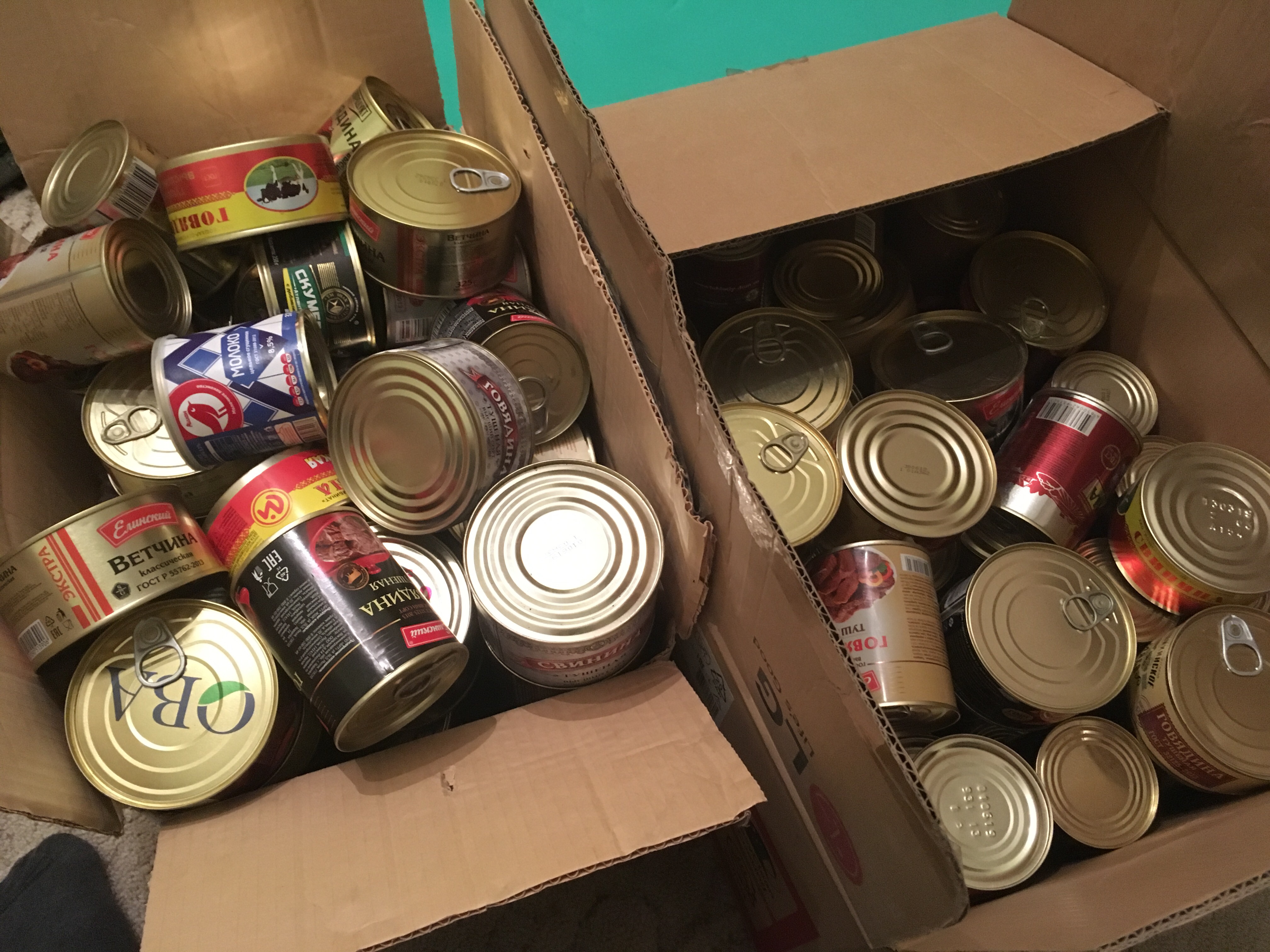 Список такой: Макарохи/рис Консервированная рыба/мясо Масло подсолн. Сахар Чай/кофе Говядина/свинина/птица/рыба в морозилку Варенье/джемы/мед Шоколад/конфеты Яйцо куриное (на 1 мес только, дальше по срокам не проходит) Сырокопченка Огурцы/помидоры/грибы маринованные