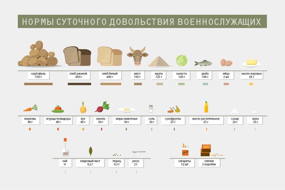 >>164756 Двачую этого выживальщика. Тащемто все уже давно за тебя придумали, ОП, просто гугли норму довольствия солдат желательно в советской армии и вперед.