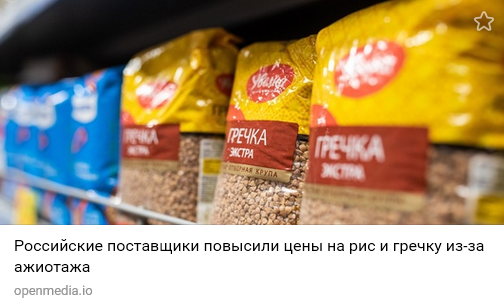 Понимаю, что не уложился в твой дедлайн, ну да похуй. Крупы/тушенку пусть скупает - это раз. Два - это то, на что взлетят цены из-за импорта - чай/кофе, баклажанную икру, если жрет её, лечо (баклажаны и болгарский перец у нас не производят), да дохуя чего еще. Картошка, например, - её или везут откудато, либо в 90% случаев из импортируемых семян растят. Но первое сейчас - это импорт и то, что делается с учетом импорта. А маленькую морозилку свою пусть мясом забьёт и маслом сливочным (хз сколько кусков, зависит от потребления, оно все равно неск месяцев хранится) Я сам только начал запасаться и раздумывать что закупать. До этого в перманентном ахуе следил за всеми новостями, еще не осознал сам до конца какой пиздец грядет.