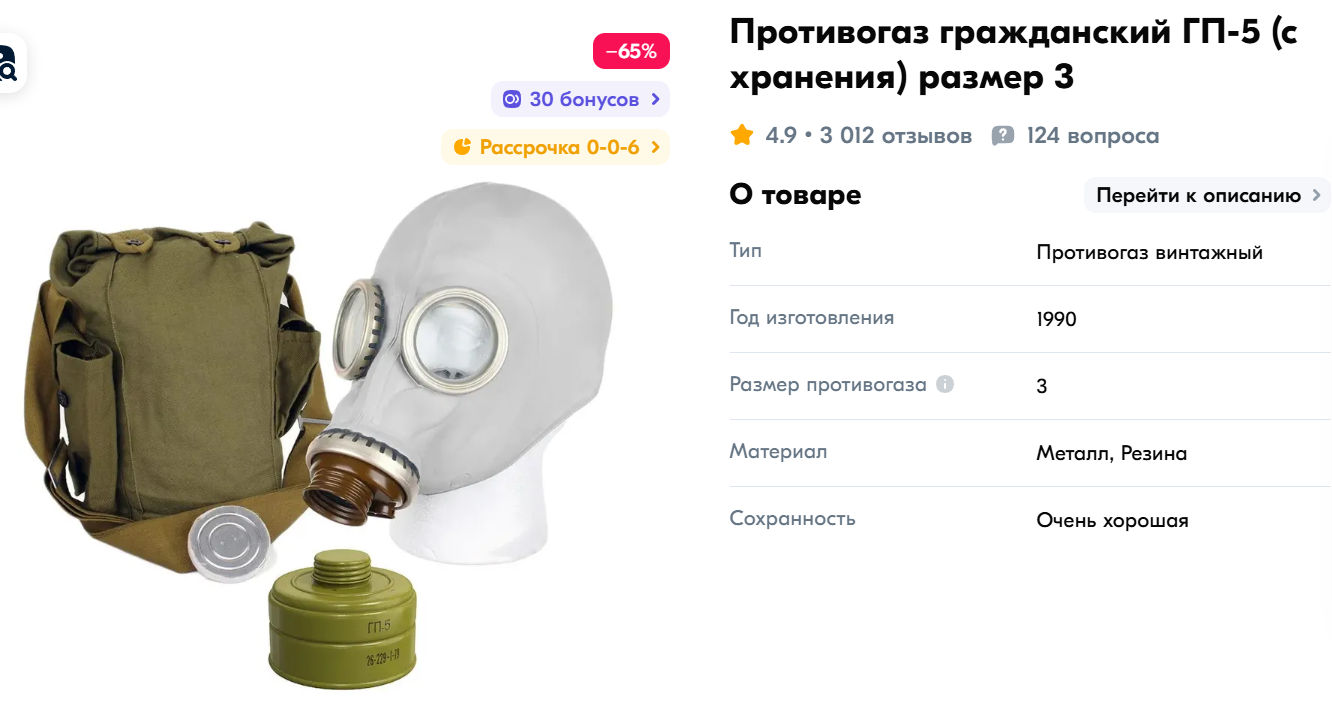 Кстати по поводу противогазов не советую брать всякие противогазы с нестандартными фильтрами(по типу хомяка) тк на них хуй найдешь фильтры.лучше возьмите какой-нибудь ГП или ПМК фильтры на них более распространены