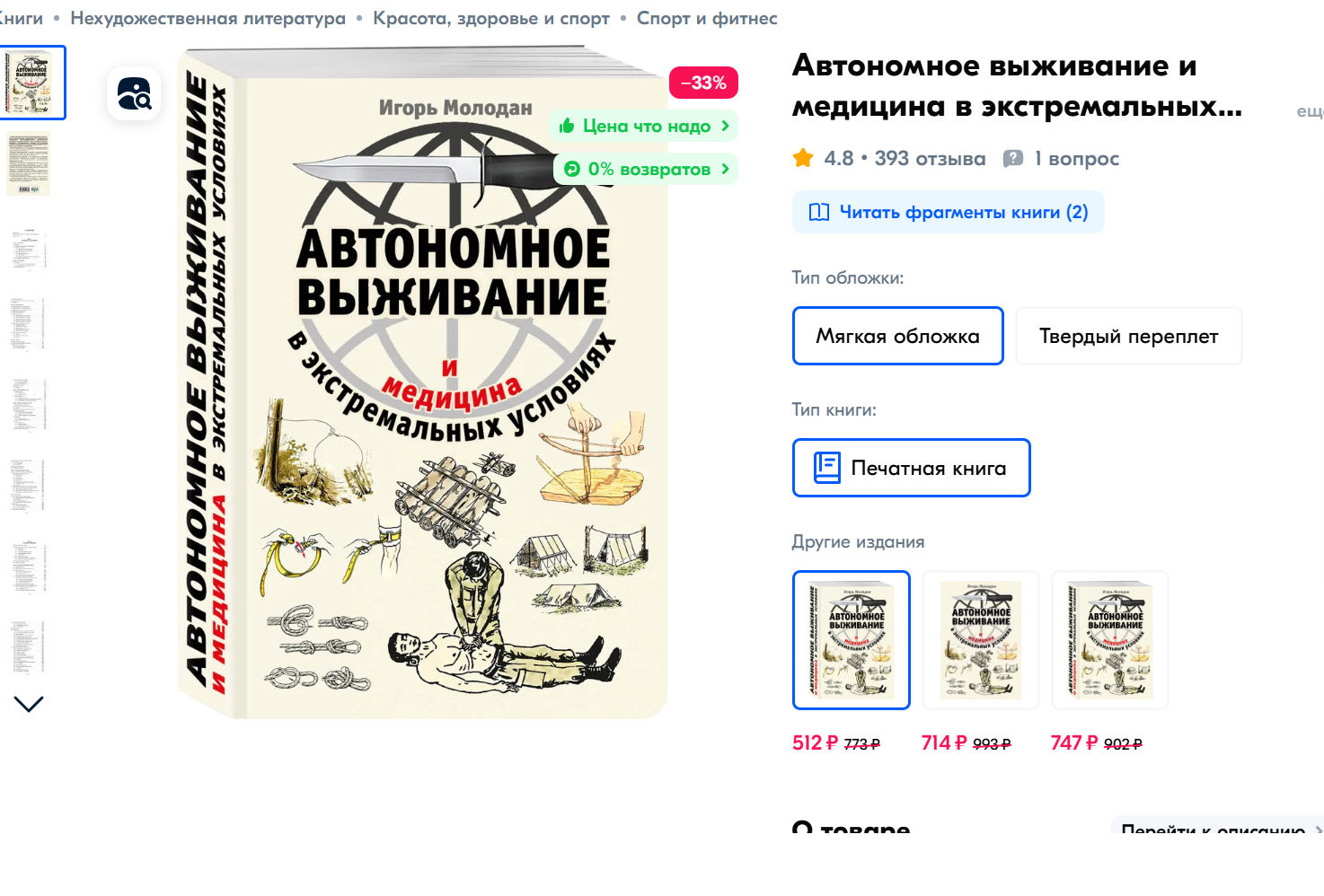 >>183763 Спору нет. Но новодел который пишет каждый додик насмотревшийся как Беар Грилз пьет мочу, тоже постить не охото. Лучше олдовые книжки, типа выжывач ВДВ, учебник по РХБЗ