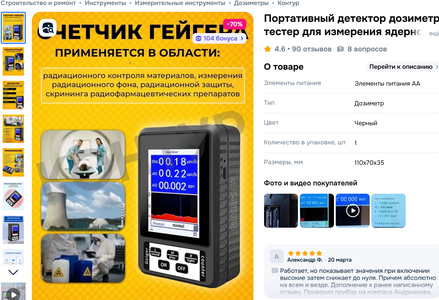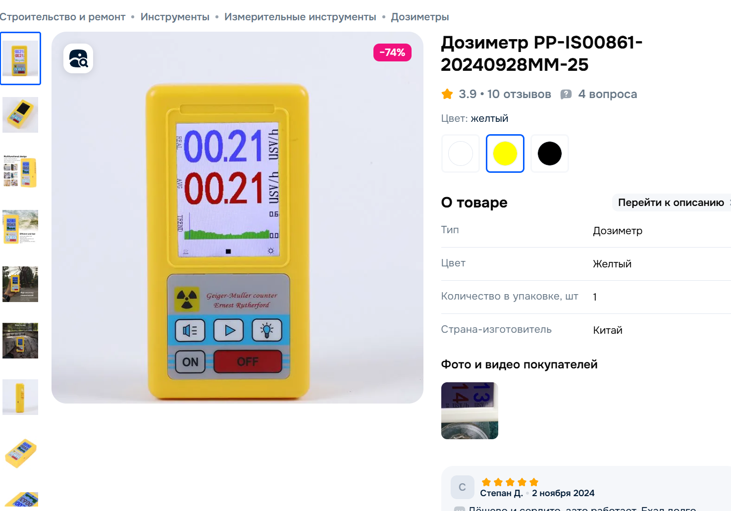 Внимание! Дозиметр RadiaCode-101 в продаже отсутствует. Заказы не принимаем. Планов по производству этих приборов, к сожалению, пока нет из-за дефицита элементной базы (на текущий момент нет возможности приобрести отдельные компоненты для производства). Если у нас появятся новости - обязательно сообщим.