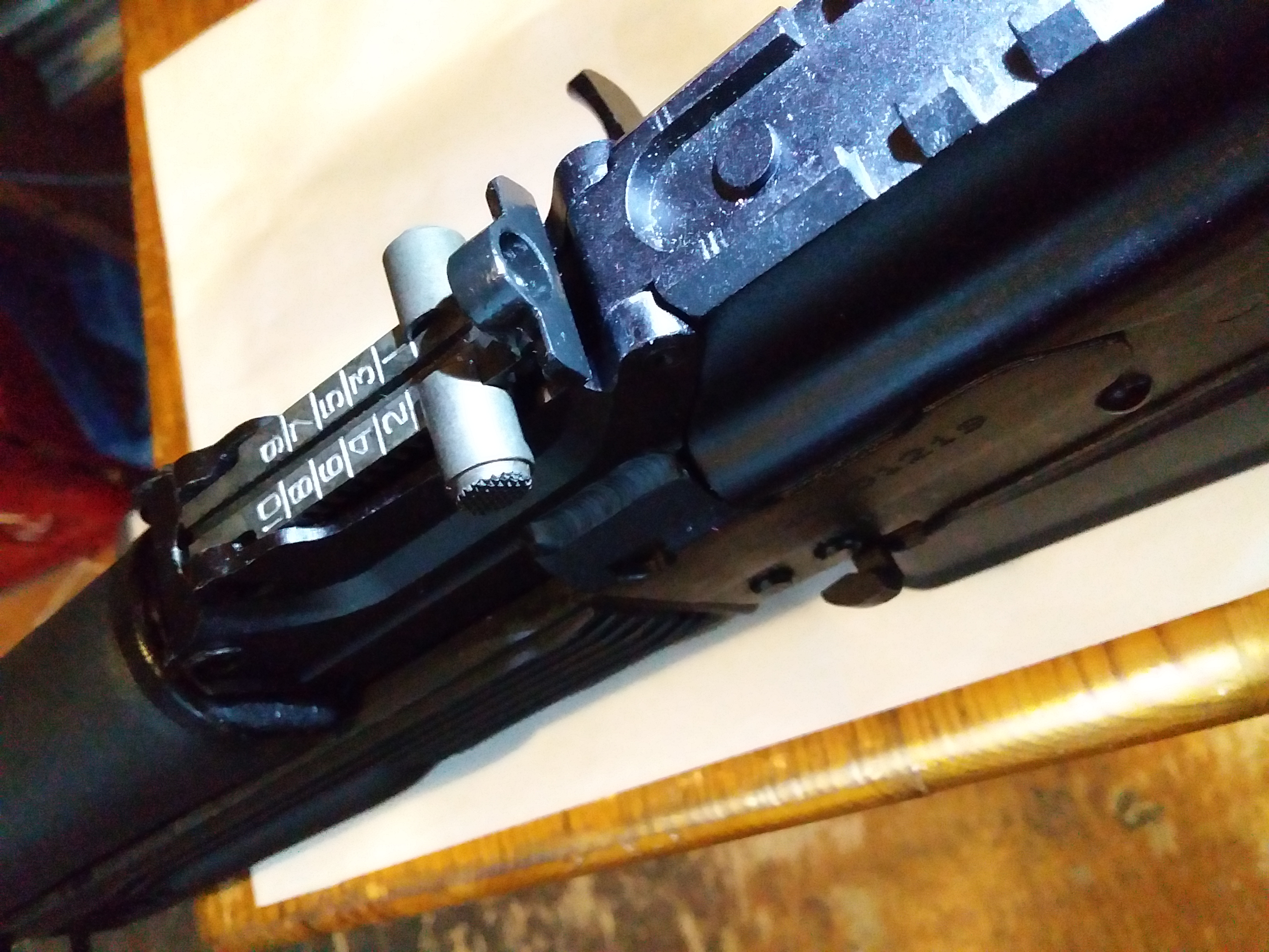Сойги стали делать с новой клёпкой с 25 года, успевайте купить 24 года! Вот эта клёпка расположена так, что не дает поднять переводчик на необходимую высоту которая позволит его вытащить. Блокиратор приклада упирается в эту клёпку. Хрен ты разберёшь нутрянку... ну вы поняли.