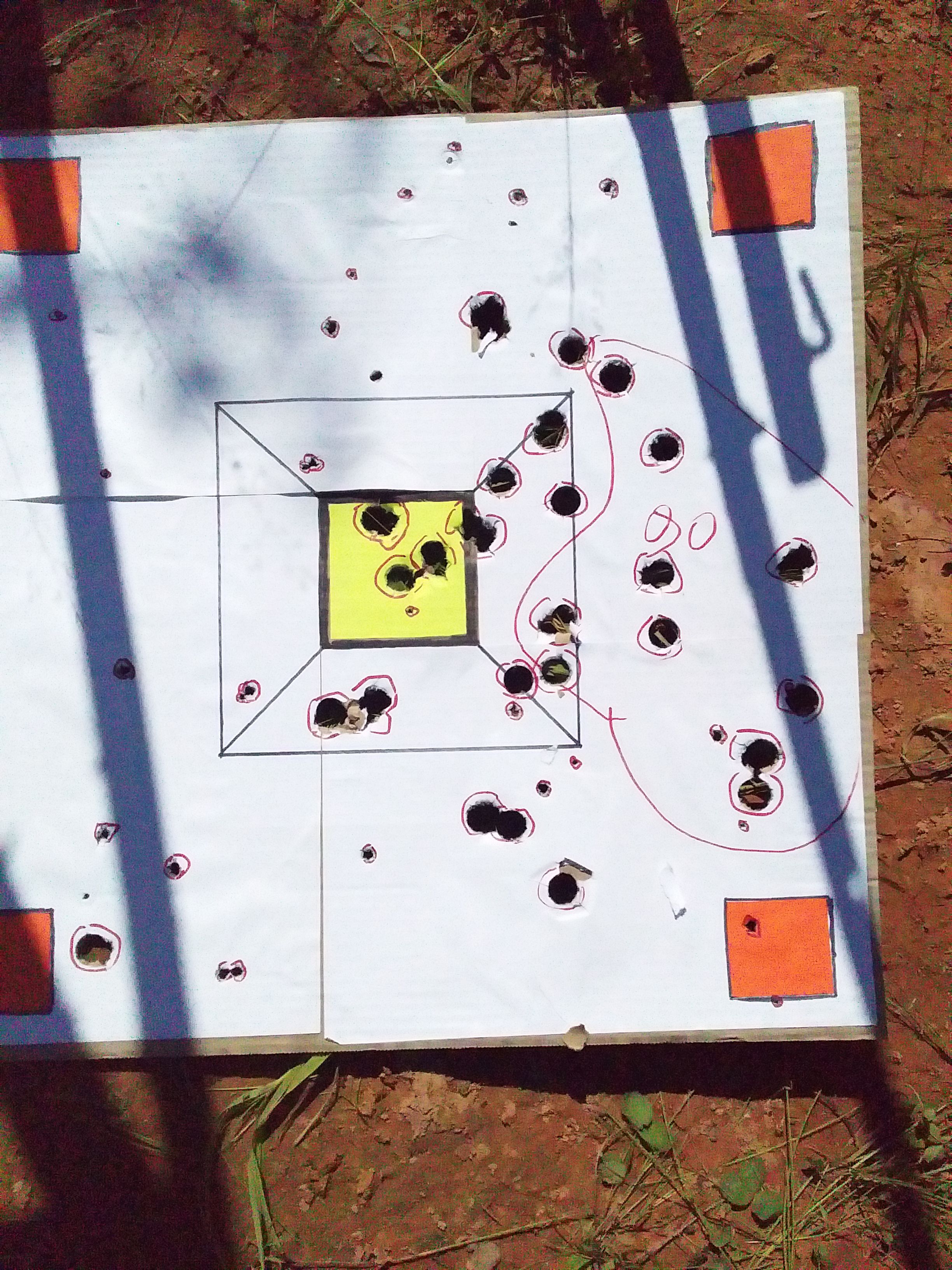 Сгонял пристрелял новый апертурный целик. Пришлось сдвинуть мушку, на 1 мишени отчётливо виден увод вправо. После полутора оборотов мушковода вторая серия легла лучше, после ещё полутора - куда надо. Вторую мишень расстрелял с 50м, с рук. Нормально так получилось. патроны - самый обычный самолитный свароговской Матч подкалиберный 30г, навеска 2,2 Сокола. По кривым и косым патронам следующий поцт.