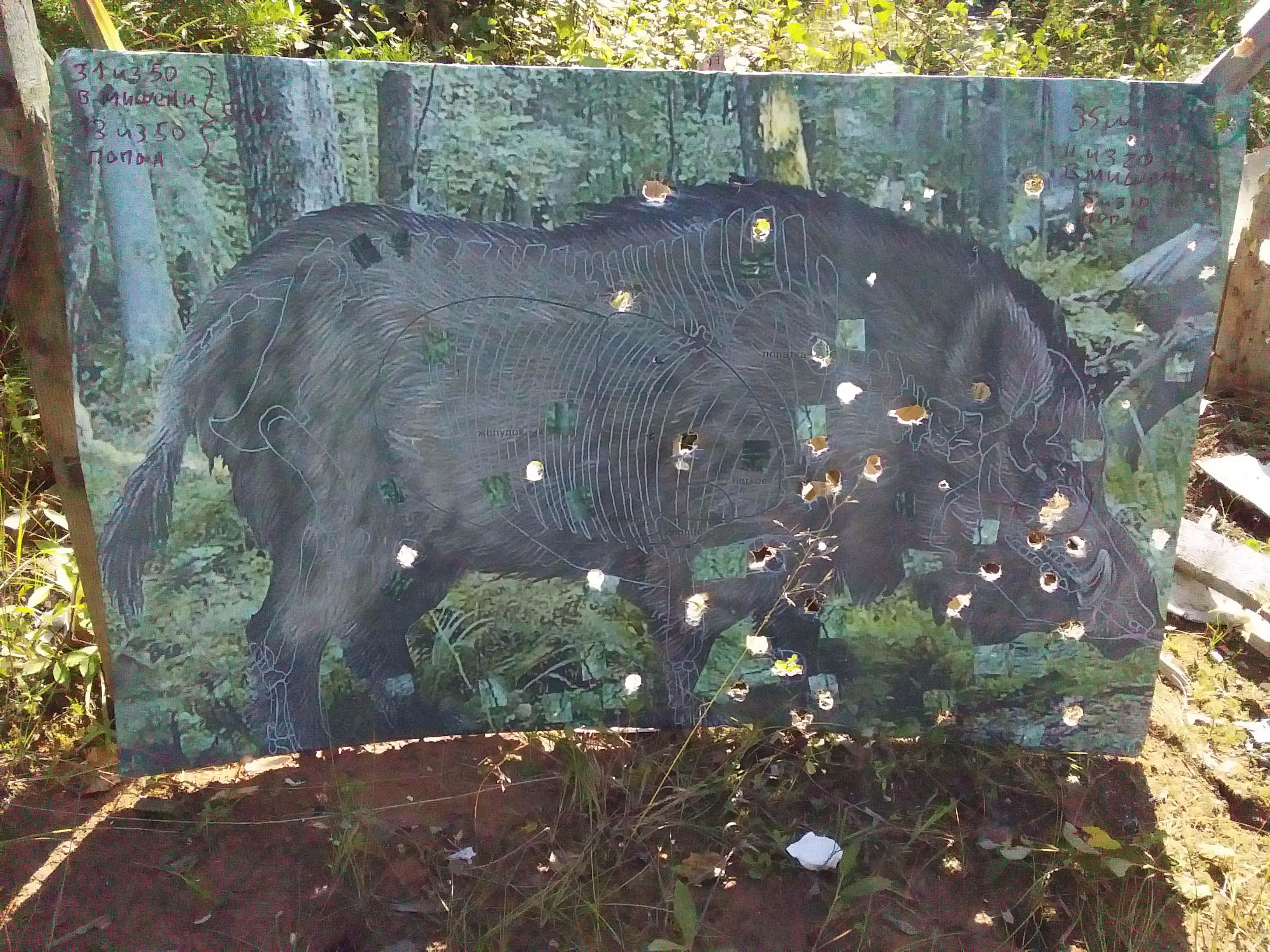 Выживачеры считают что короткий ствол у оружия - это хорошо, но вот хуюшки. На пикче кабан, в которого я с 50м из помпы со сотволом всего-то 51 см уверенно попадаю. На второй пикче такой же, но дырки в нём сделаны из Сайги со стволом 430. Патроны одинаковые, самосбор. Притом что Сайга с пламягасом, теоретически пулю в жопу газы должны пинать слабее, чем в помпе. Но вот фактик - 50м срук, отрывы из Сайги - это что-то постоянное, хотя на 35м картина с помпой почти одинаковая. Что идёт не так? Кроме как на ствол грешить не на что.