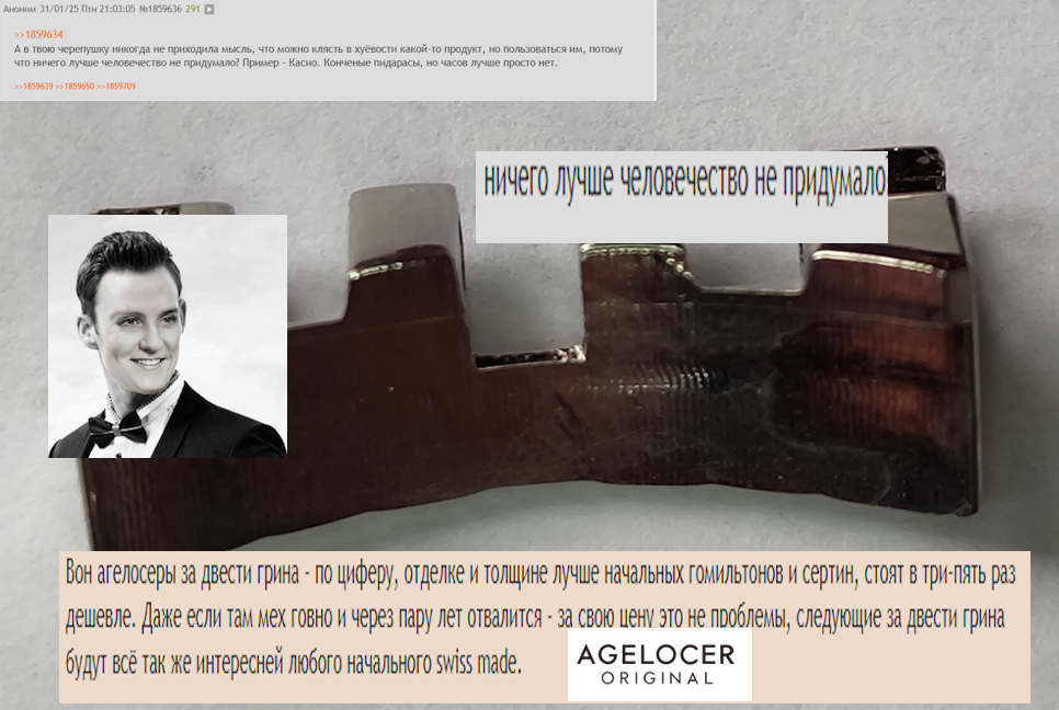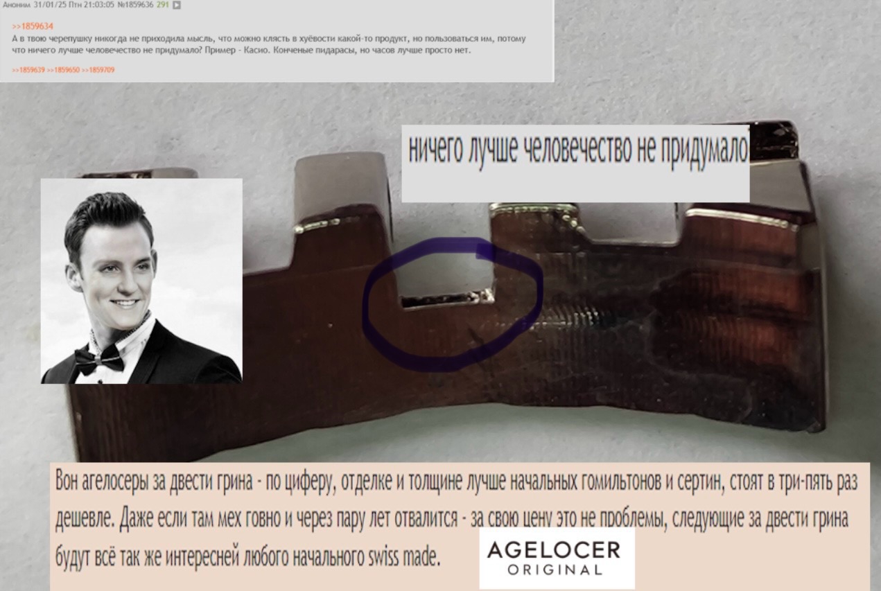 Какой же пиздец вы тут развели вместо обсуждения часов. Сначала безчасовой годами дефал швиссов хз зачем, видимо представляя себя их обладателем. Теперь тратит часы на комменты про агерлосер. Откуда столько свободного времени?