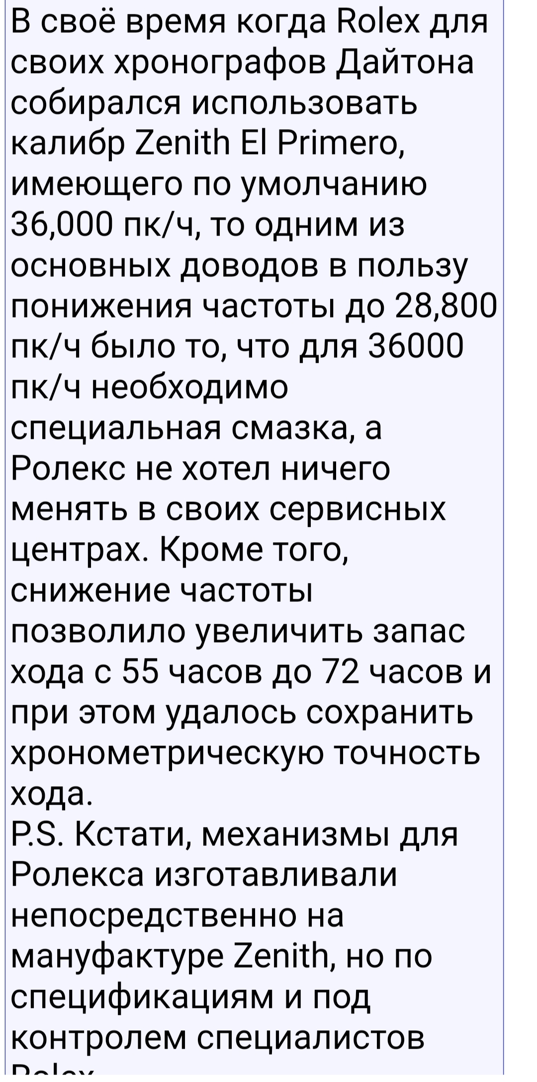 Вообще раньше предполагалось, что частота будет постоянно повышаться с развитием часов, но наткнулись на технологические проблемы, необходимость специальных смазок и т.д.