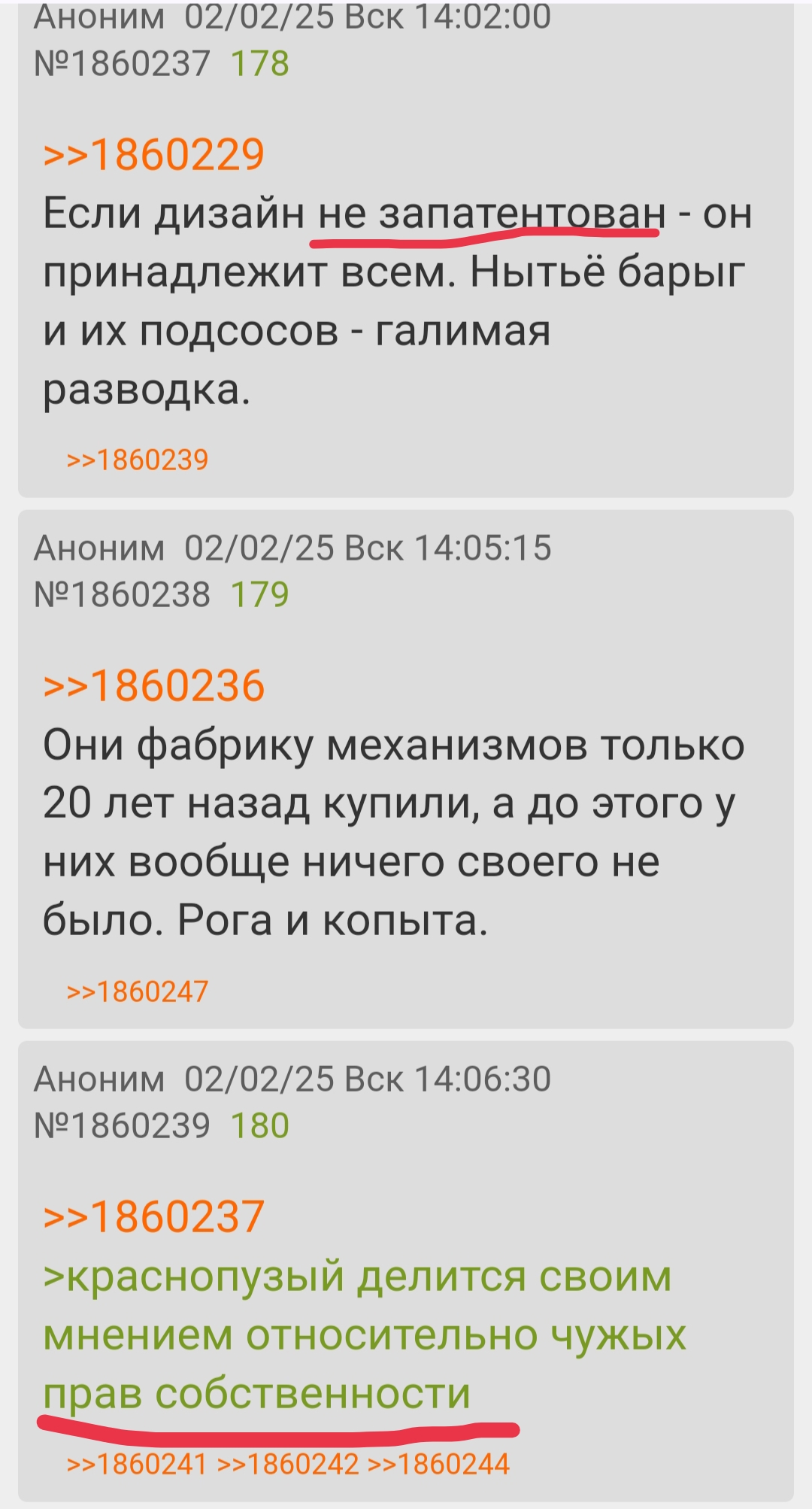 >>1860290 Это ты тупой. И настолько тупой, что не осознаешь собственную тупость. У тебя проблемы с памятью или с пониманием собственных слов? Тебе написали четко про незапатентованный дизайн. На это ты порвался с воплями про краснопузых