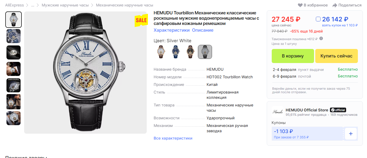 Мужчина к афере подготовился заранее — он заказал с маркетплейса часы Tissot, приобрёл их поддельную копию, которую положил себе в карман, а для отвода глаз к заказу добавил тапочки.
