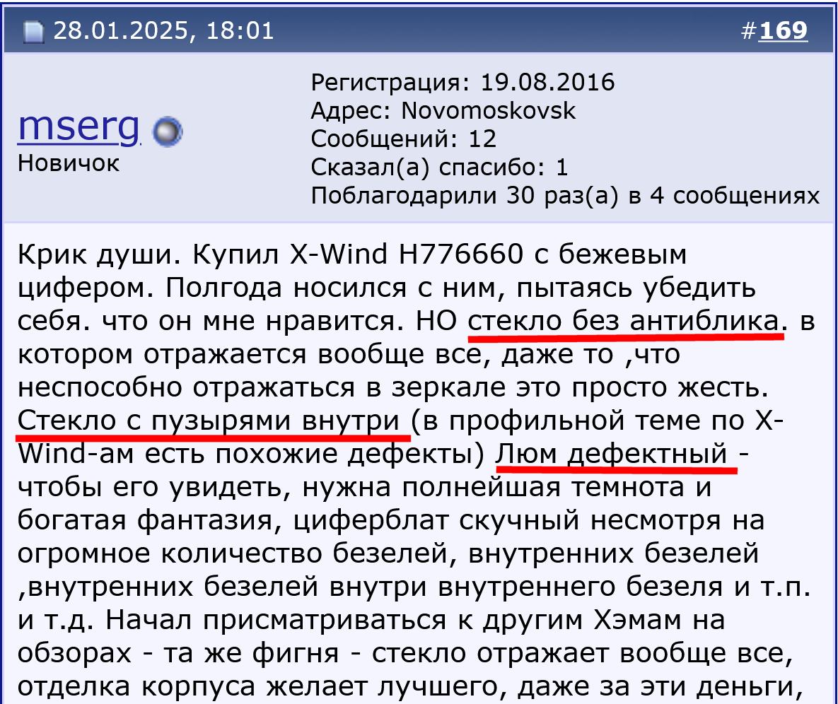 Такое чувство, что горемычный ебанат сам и спамит на вотч ру своей шизой с левых акков, а потом приползает сюда. Ибо истории какие то в край ебанутые, то пузыри неведомые на стекле Хэма (вопрос где они были при покупке), то заводить кто-то боится часы. Ну рили же бред ебанутейший. Тут кто-то боится часы заводить? У кого то появились неведомые пузыри на стекле? Ну вот вам и ответ. Это вакуум в голове какелогерного.