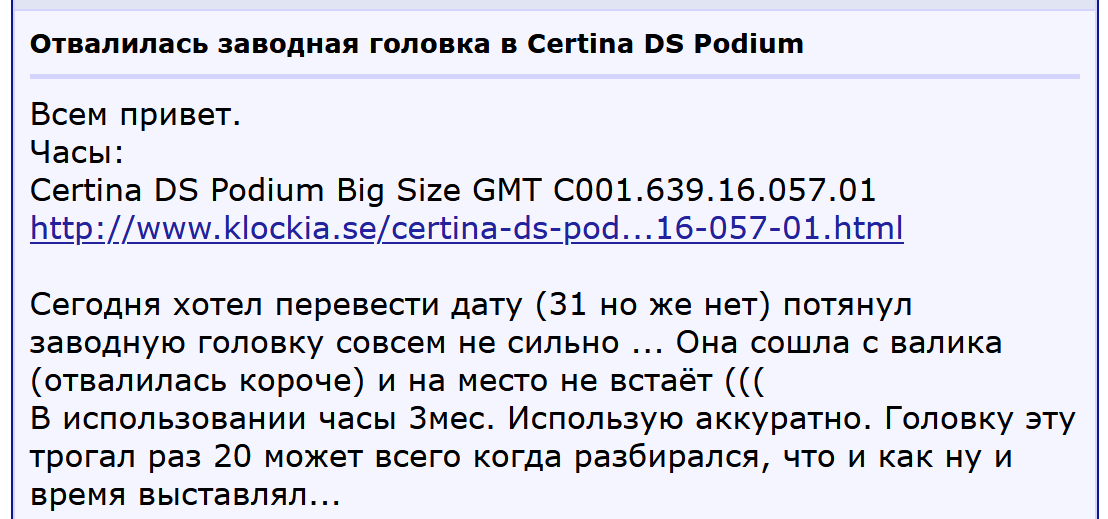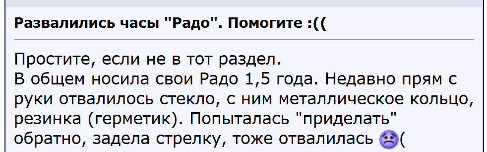 Я тебе вопрос задал, почему ты обрезал дату и что дамочке там указали на паль? Ибо странно, что у нее нет гарантийных карт и она не пошла именно в бутик с этой проблемой, где покупала «Радо», а просила вставить стекло через монитор на форуме.