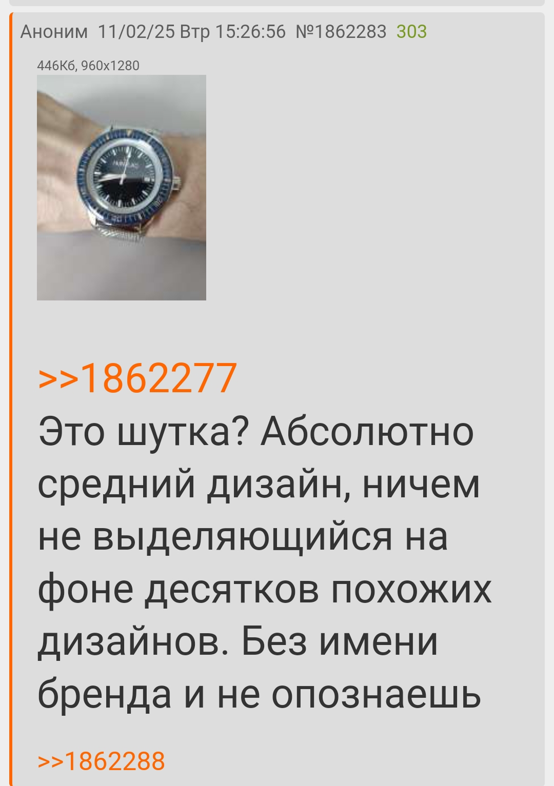 чел такое происходит, когда человек покупает вещь, которая ему не по карману вот представь, что он купил не хэмы, а восток, или касио ему бы было срать в 6 куч на эти блики, на этот цифер, на эти пузыри но нет, он вложил существенную для него сумму денег и поэтому у него обострение шизы, крик души и полгода дрочева на ровном месте. Поэтому все эти сказки про "часы-одна зарплата" работают только если чел живет один и для себя. А если у него семья и дети, то он может получать 200к, из которых 150-170 стабильно будет уходить на семью, поэтому накопить 200к и еще и потратить их на часы для него - ощутимая задача. так что часы должны стоить ровно столько, сколько ты сможешь себе позволить отложить в месяц у тебя может быть зп 50к, но ты живешь с мамкой и 50к откладываешь а можешь получать 500к, но 470к у тебя стабильная финансовая нагрузка