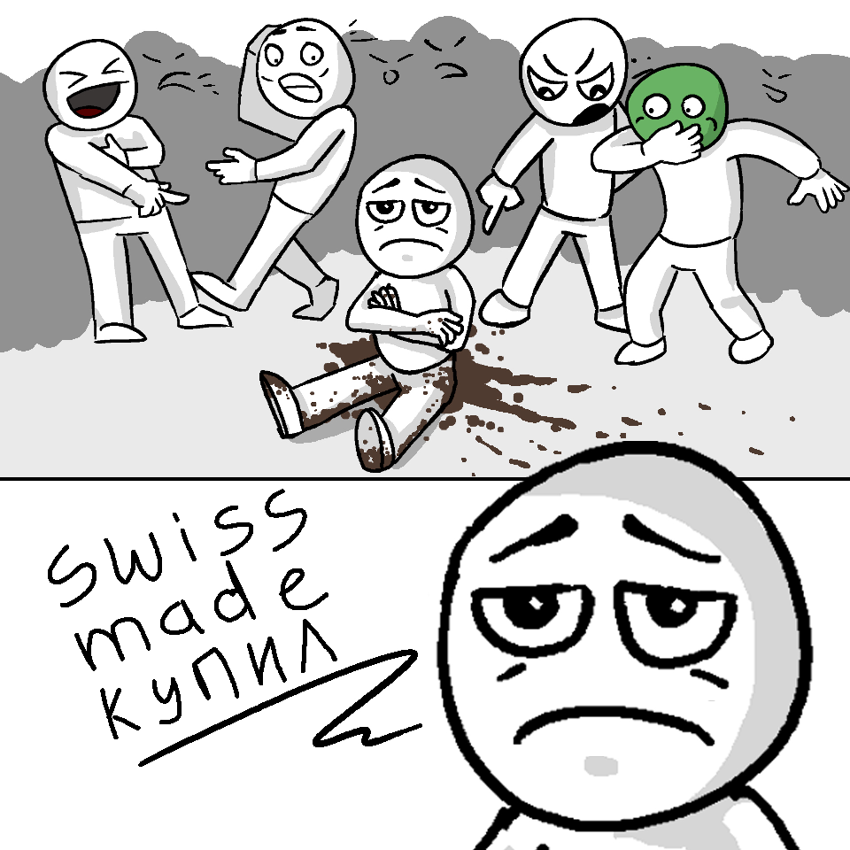 Смотри: обезжиренный народец имеет иллюзию, что ему продадут сделанное швейцарами, как обещает маркировка swuss made и маркетологи. Получает обезжиренный народец сделанное согласно закону в стране с дешёвой рабочей силой, и хорошо если это Китай. Про мессинджи и говорить неудобно какой позор вышел.