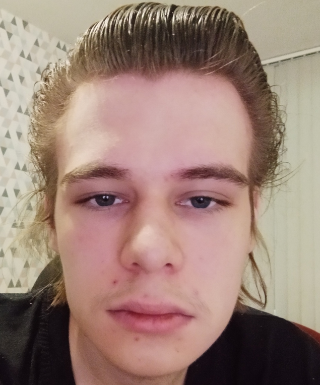 Эх. Как не оскуфеть? Скулы довольно мощные, но на них шматы сала лежат, вкупе со слабым подбородком пиздец. На щеках ещё чёрные точки, бугры какие-то, немного видны фиолетовые сетки будто от сосудов.
