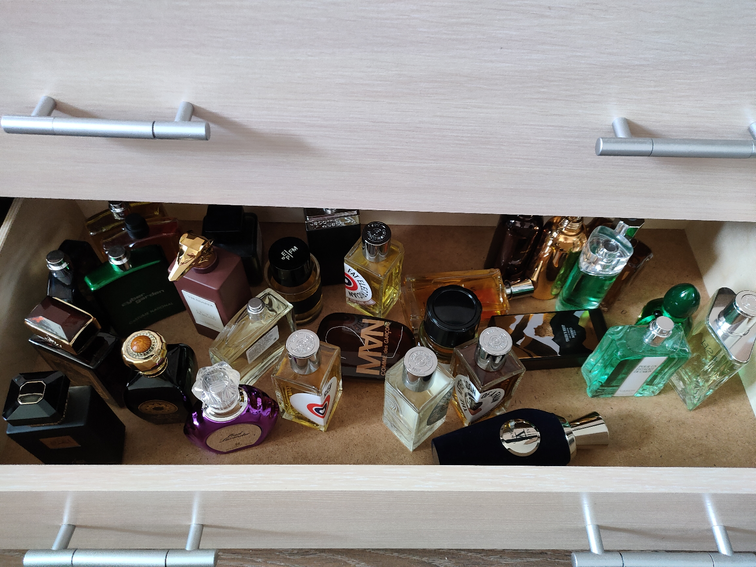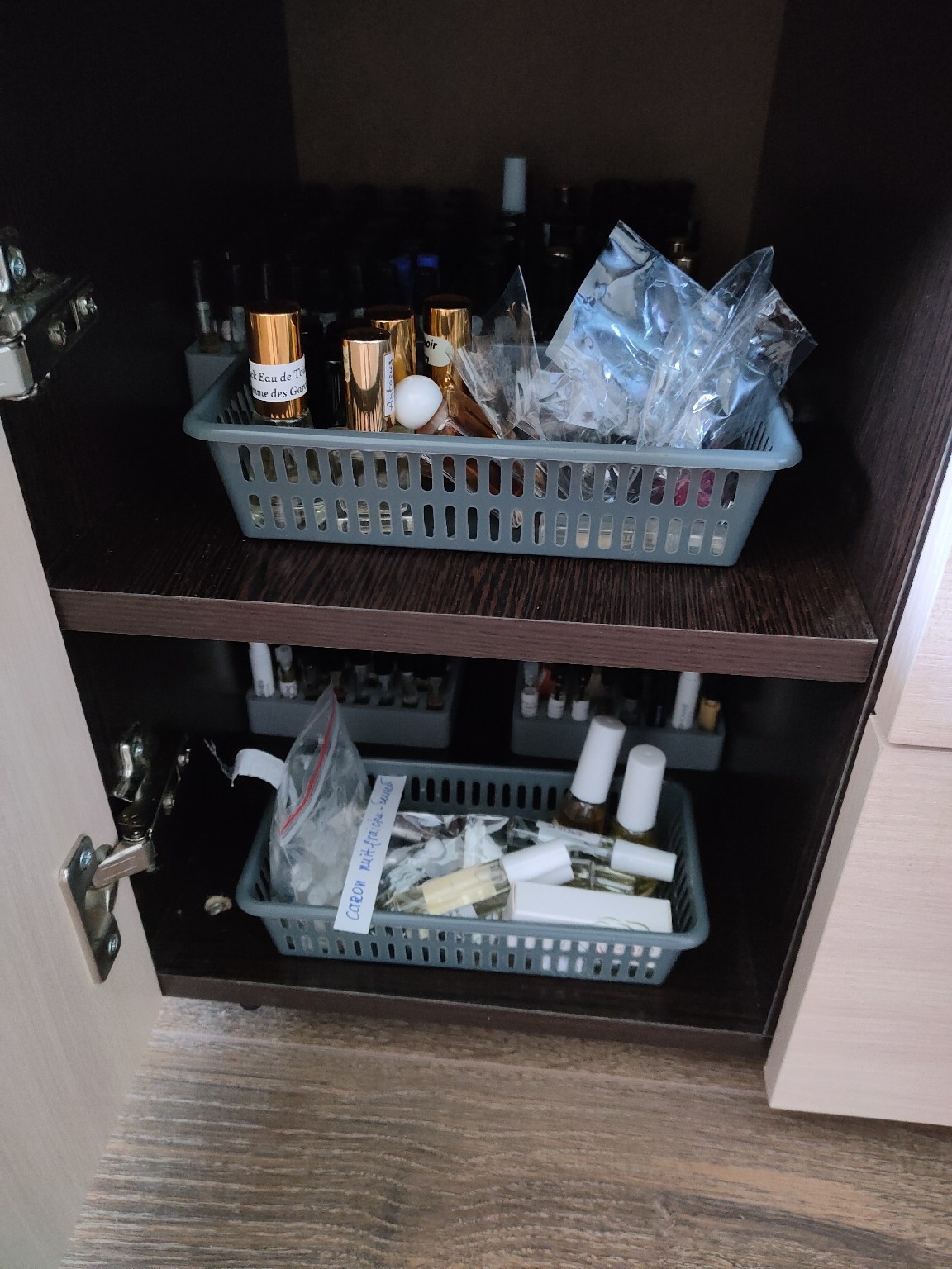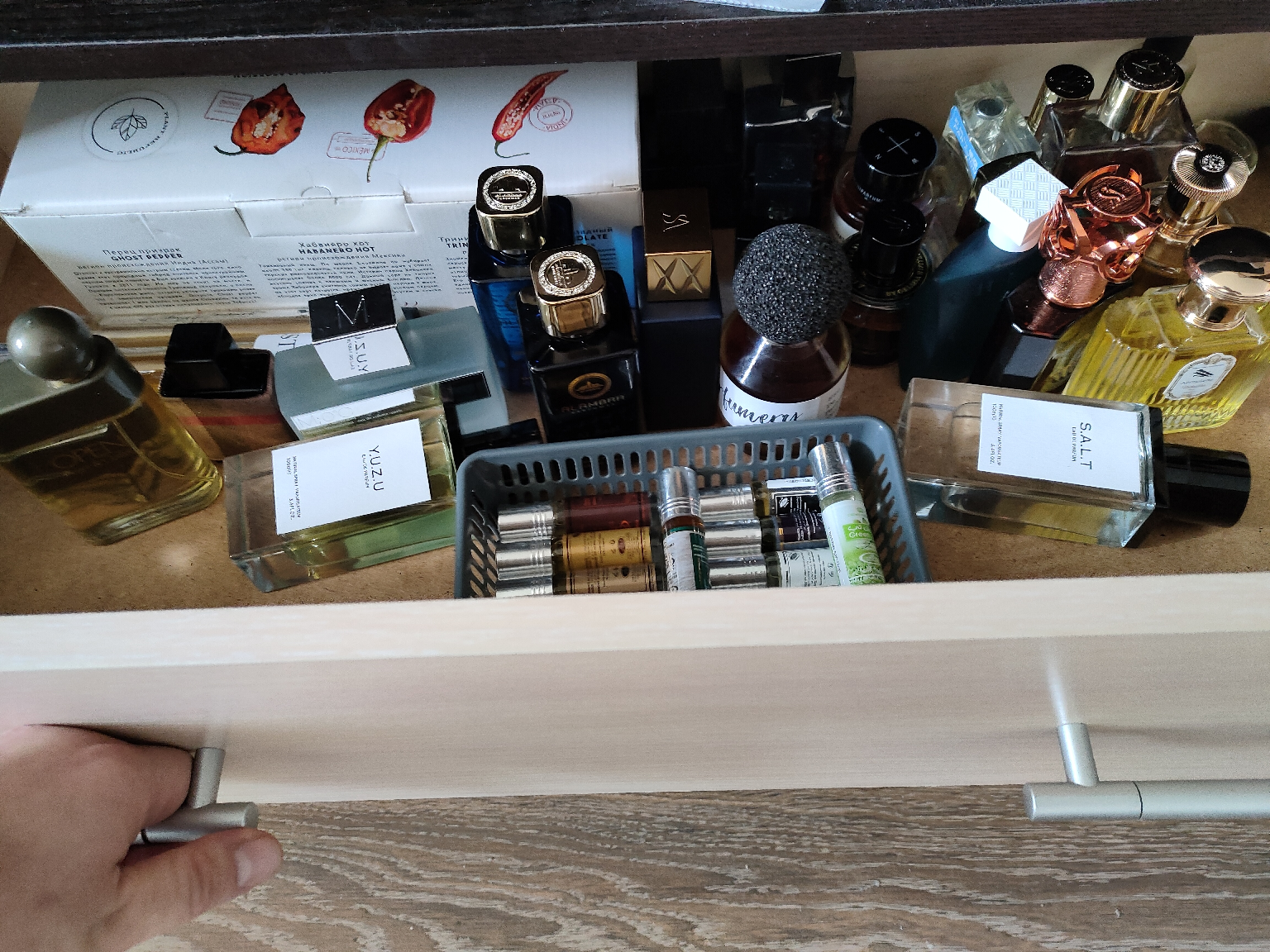 Единственное - хотелось бы навести тут порядок. В идеале - сделать полку парфюмерную, а то они у тебя там так валяются в комоде. А так сразу бы заходит к тебе в хату телочка (гыгы понял да выпячивает глаза) и тут твои красавцы стоят - гарантированно заинтересуешь ее уже на входе. Ну а мусор на авито продай или в тг барахолках (если не прокачан авито - лучше в тг). Даже отливанты можно если там нормальное чето.