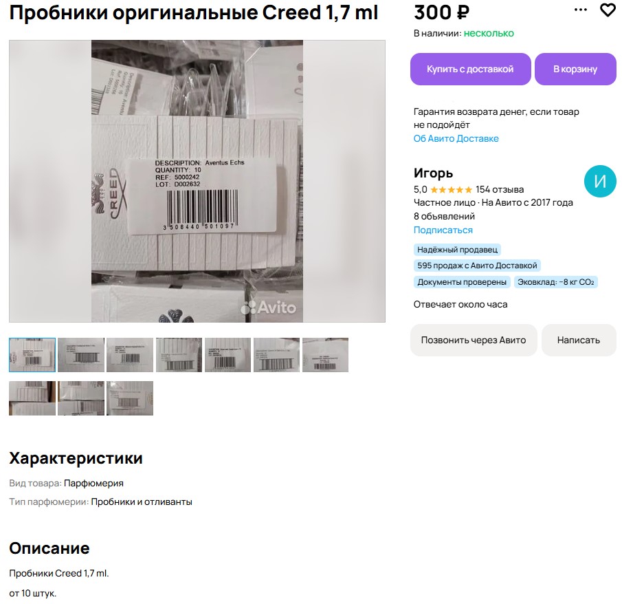 Так же из скрина видно, что чел продает "фирменные пробники" в довольно большом кол-ве, вопрос, где он их берет? Вот несколько вариантов на подумать.