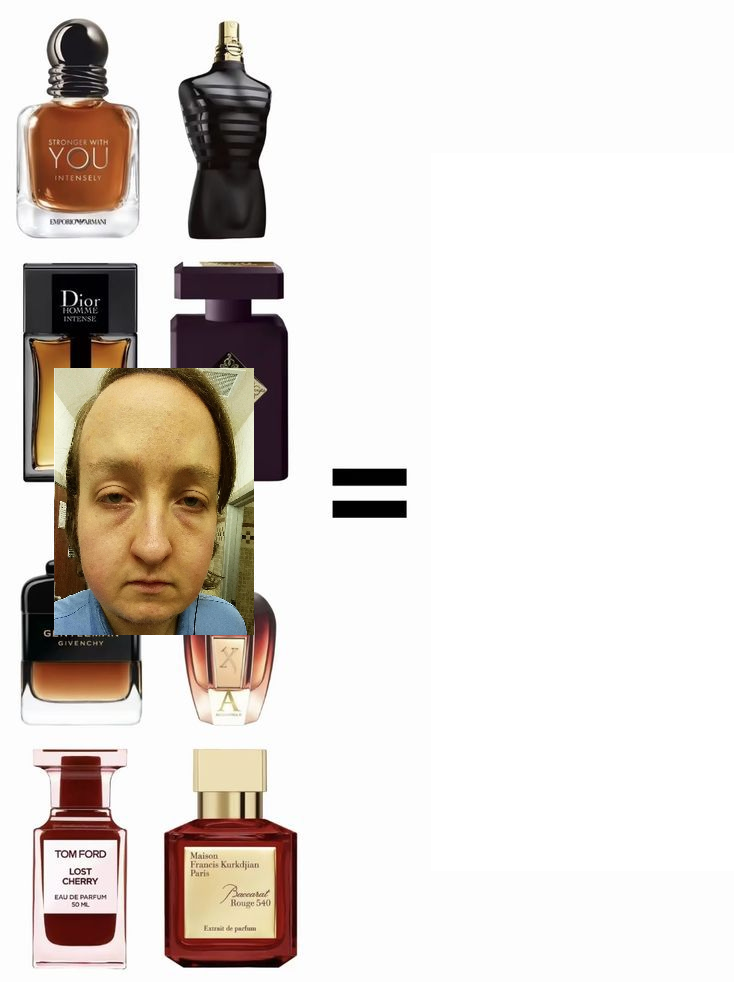 Читаю я тред... Боже, какие же вы душнилы. Куча чмошников, за редким исключением, которые напокупали пробники с рандеву сидят и с поднятым носом перед монитором строчят гневные комментарии про парфюм, попивая "Добрый" колу из бокала для виски. Вам не нравится абсолютно всё. Aventus - оверпрайс, Le Male - не современный, Black Afgano - для чурок, Sauvage - отвратителен и т.д. Куда не ткни - для вас нет бабоукладческих парфюмов, которые вы так ищете. Так их нет и не будет, если вы чмошники считаете что парфюм это какой-то волшебный эликсир. Парфюм дополняет образ, а не формирует его.