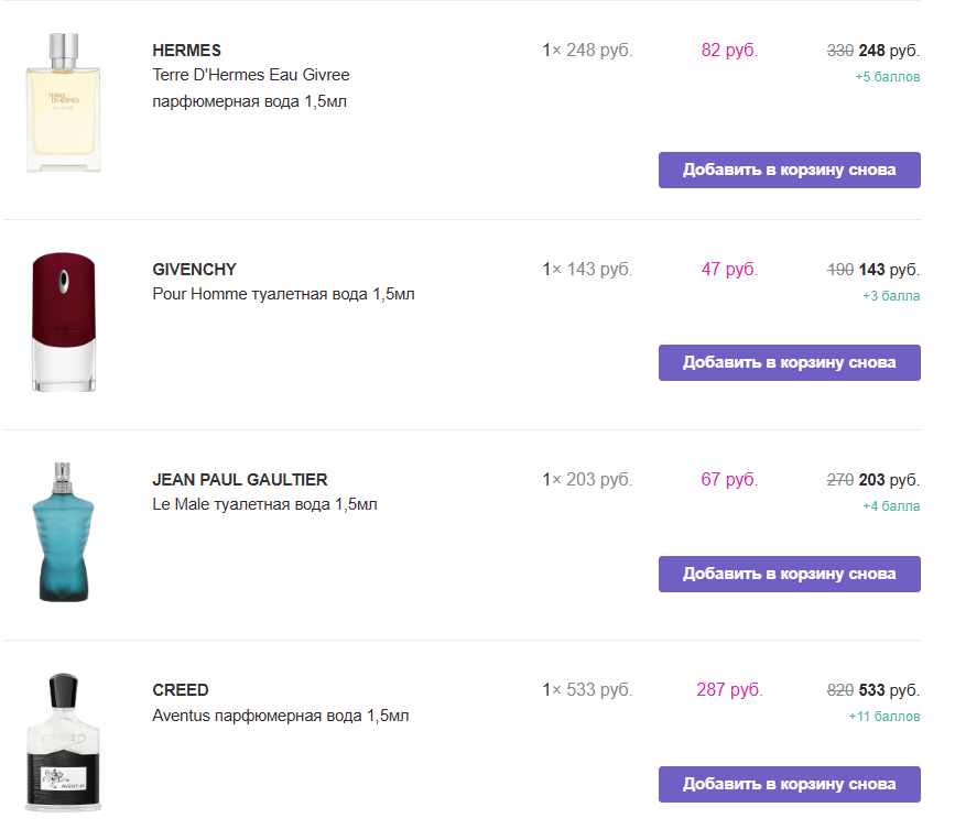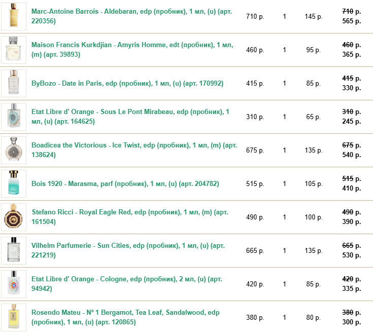 Согласен Просто одно и то же гоняют по 100500 кругу, всегда эти лемаль ле парфамы, стронгеры, вонтеды, эрос флейм, ysl milf, имага и прочее. Частенько сюда залетает еще Y EDP, Le beau le parfum, Торино 21, цитрон буазе и прочее.